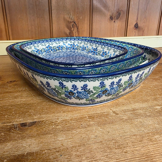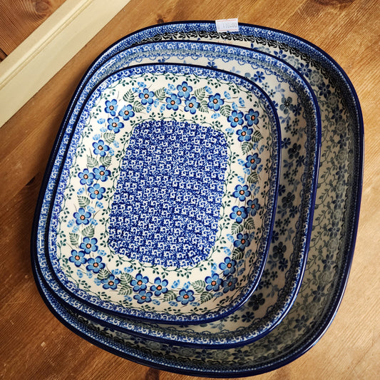 Set of 3 ~ Rectangular Serving Bakers ~ blues mix (saves $30)