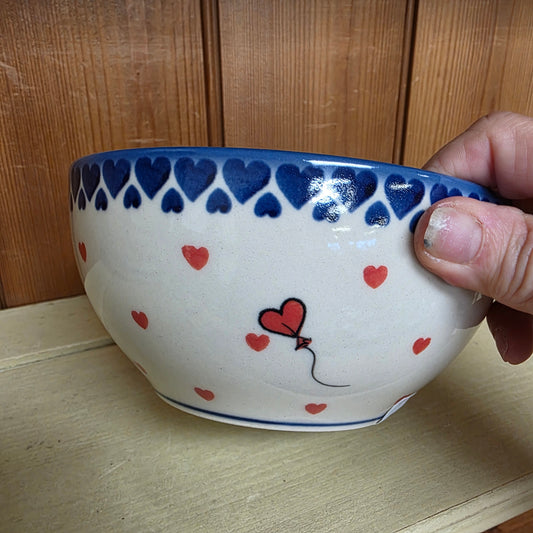 Bowl ~ 6" ~ Grey & White & blue (Rim)