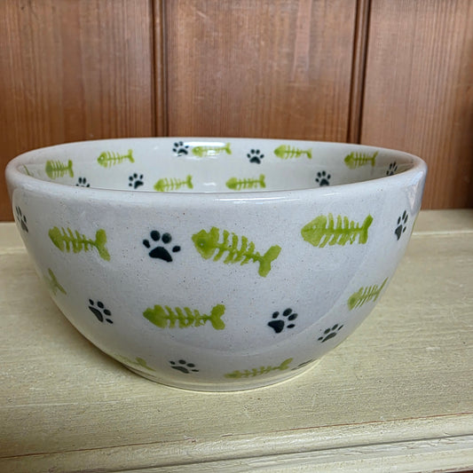 Bowl / Green Kitty / 5" / 2 cups Fish Bones