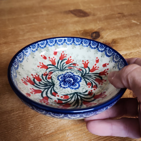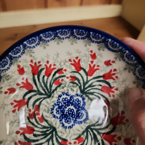 Polish Pottery Bowl ~ 5" B89~1437X ~ Crimson Bells PF0323