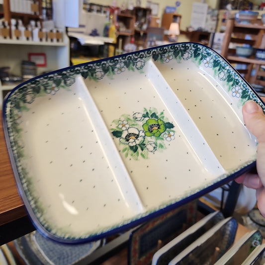 Dish ~ Divided ~6.5" x 9.25" 393-2320X ~ Green Poppies pf0424
