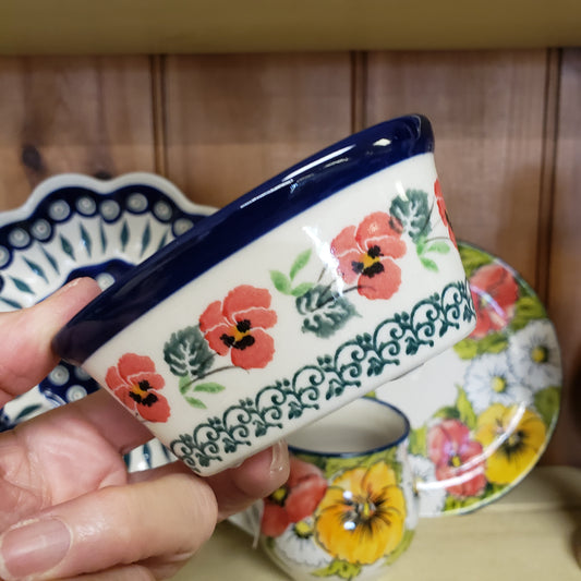 Bowl Heart Shaped Ramekin 4" x 4" 2538X ~ Red Pansy PF1024