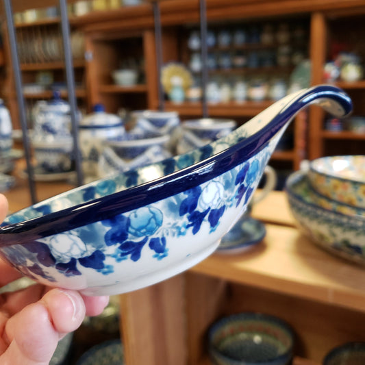 Bowl condiment w/handle ~ 4.5" 2221X ~ Ice Blue Poppies pf1222 condiment bowl w/handle