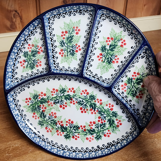 Bowl Fluted Vegetable 1734X ~ Holly Berry Chip & Dip PF1024