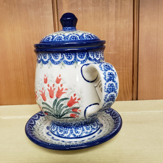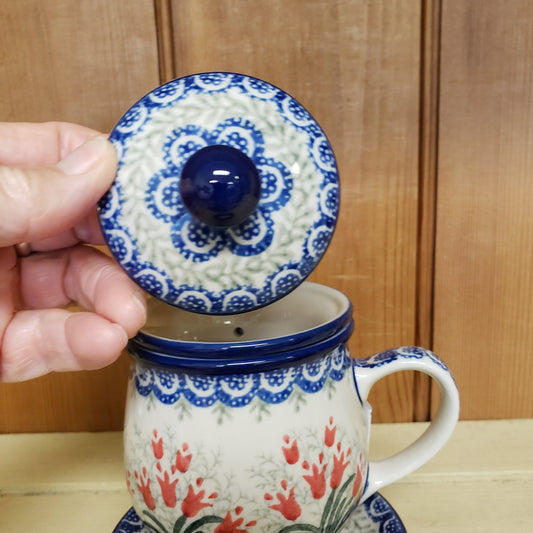 Mug w/Infuser and Saucer ~ 12 oz. 122-1437X Crimson Bells