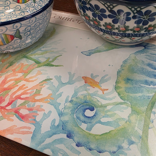 Cutting Board Seahorse / Counter Saver Glass 8" x 10". **Not Polish Pottery