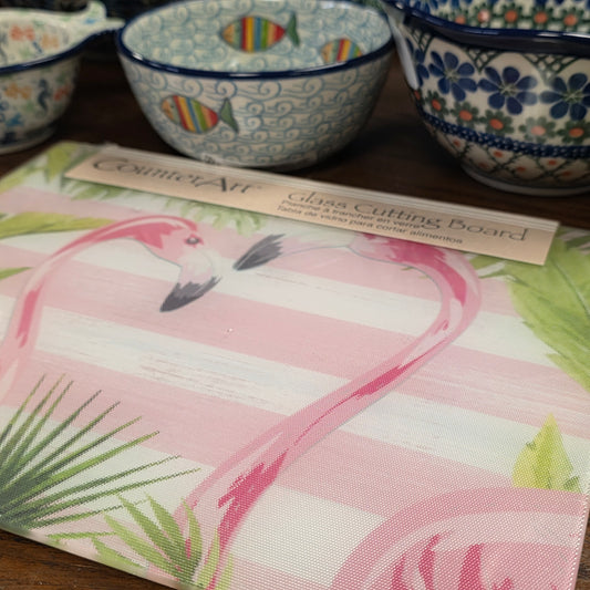 Cutting Board Flamingo / Counter Saver Glass 8" x 10". **Not Polish Pottery