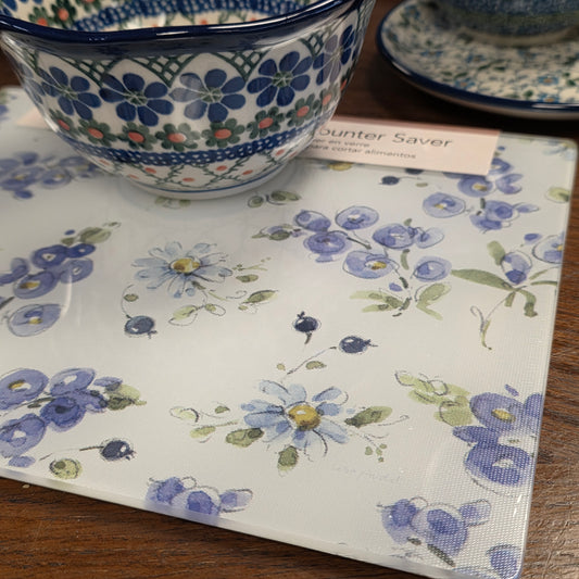 Cutting Board Blues/ Counter Saver Glass 8" x 10". **Not Polish Pottery