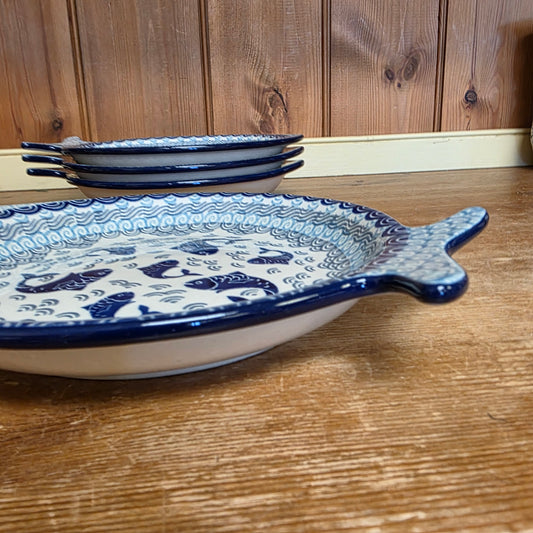 Fish Shaped Plate ~ 8.5"x 7.5" 2372X ~ Deep Blue Sea