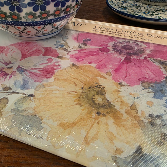 Cutting Board Summer Garden / Counter Saver Glass 8" x 10". **Not Polish Pottery