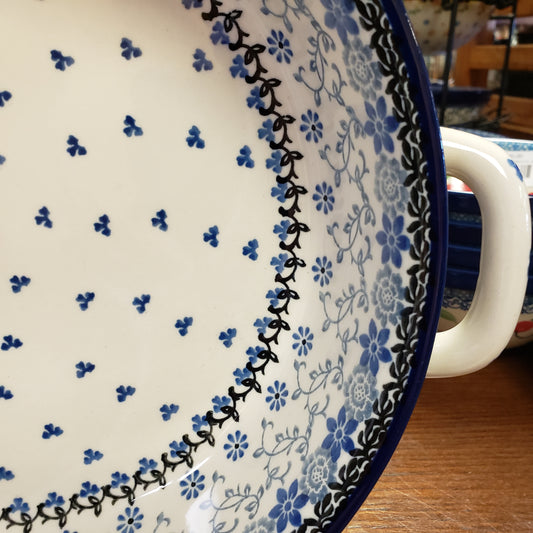 Baker ~ Round w/ Handles ~ 8" 419-1432X Blue Bells