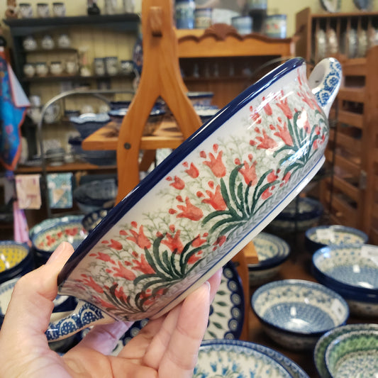 Baker ~ Round w/ Handles ~ 8" 419-1437X Crimson Bells