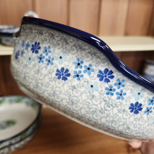 Baker ~ Round w/ Handles ~ 10" 420-0614X Blue Spring Daisy