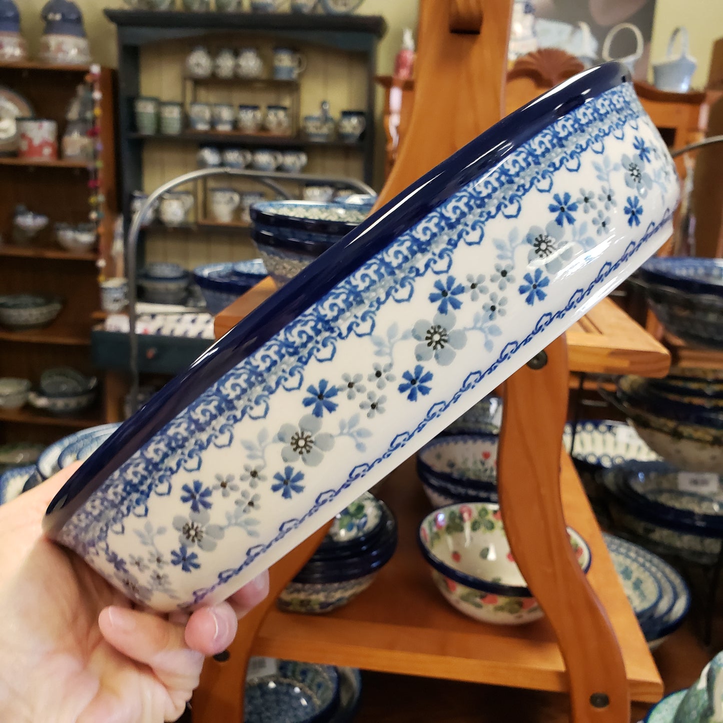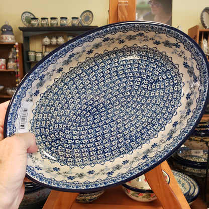 Polish Pottery Baker Oval 10.5" 2333X ~ Blue Horizon PF1024