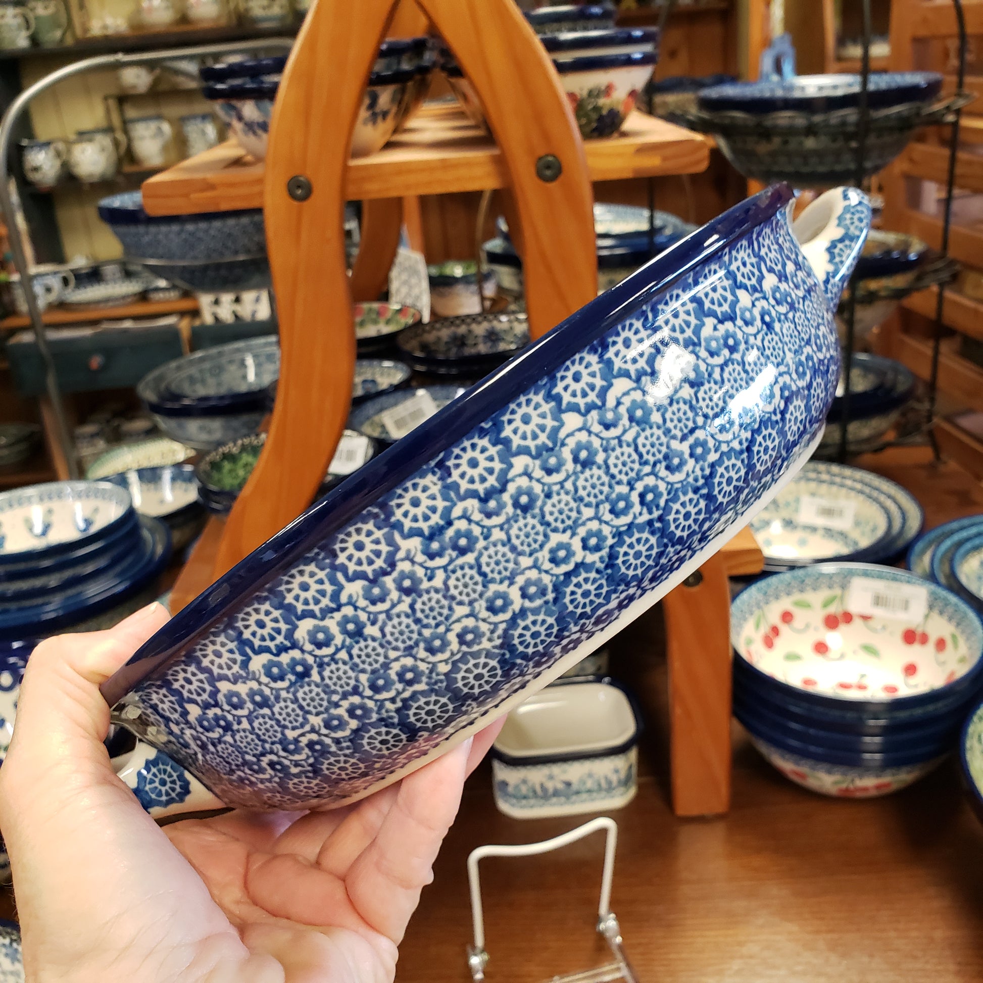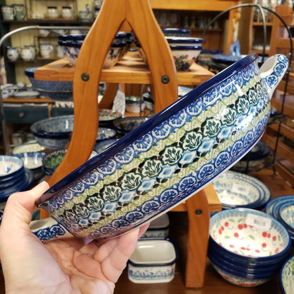 Polish Pottery Baker Round w/ Handles 10" 2615X ~ Midnight PF1024