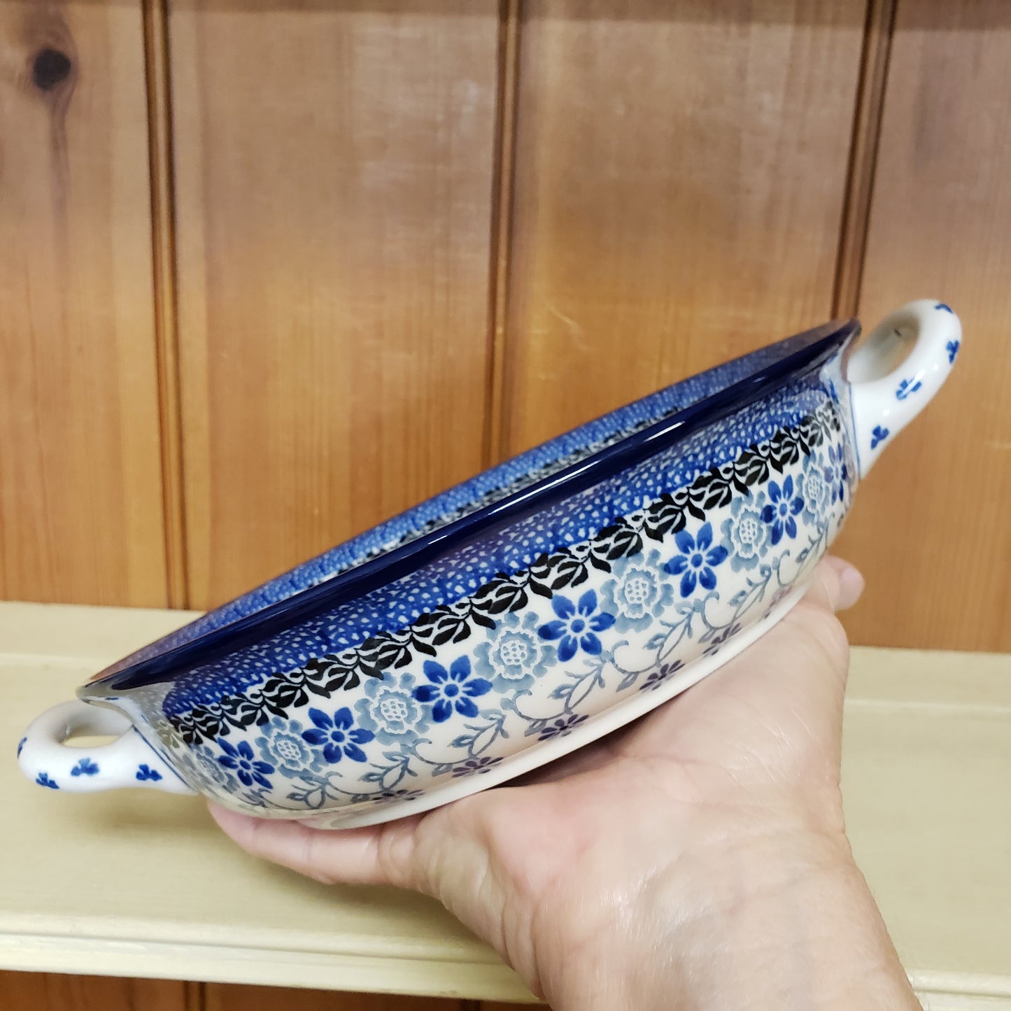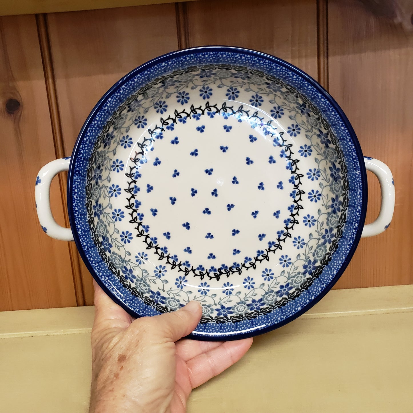 Polish Pottery Baker Round w/ Handles 8" 2158X ~ Silver Lace PF1024