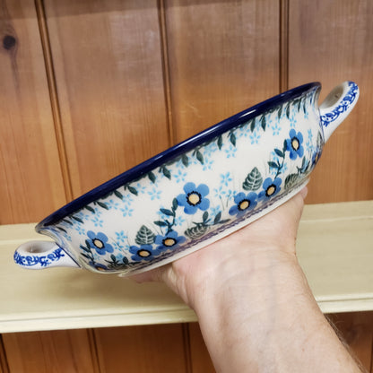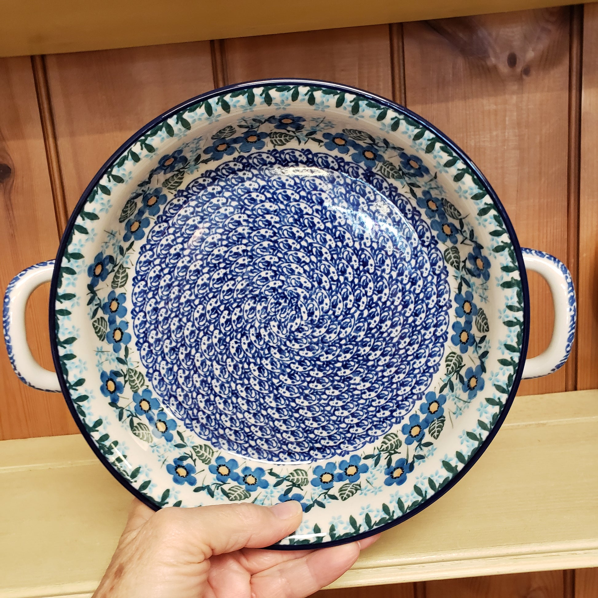 Polish Pottery Baker Round w/ Handles 8" 2277X ~ Joyful Blue PF1024