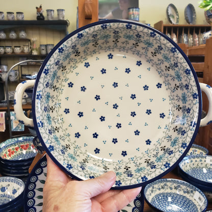 Polish Pottery Baker ~ Round w/ Handles ~ 8" 419-2641X pf0425