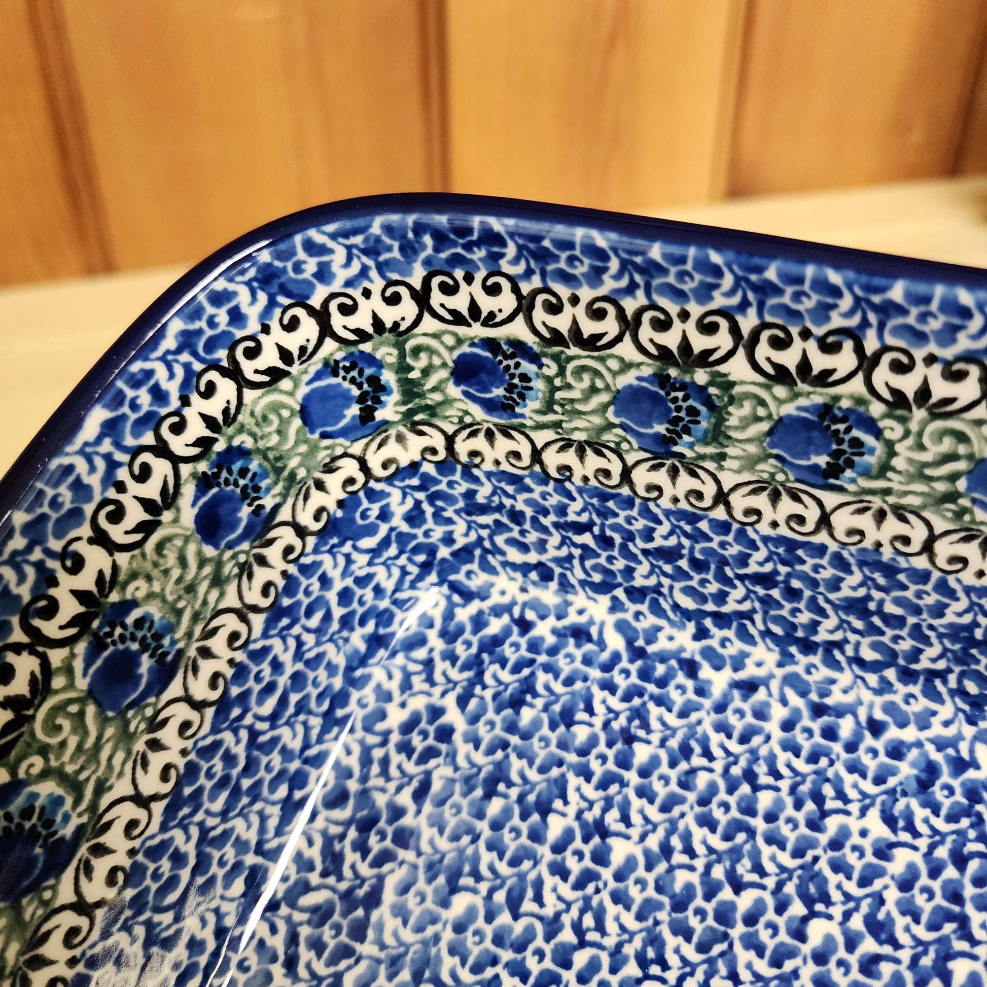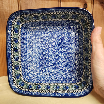 Polish Pottery Baker Square Deep Dish 7.75" 1513X ~ Peacock Feather PF1024