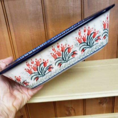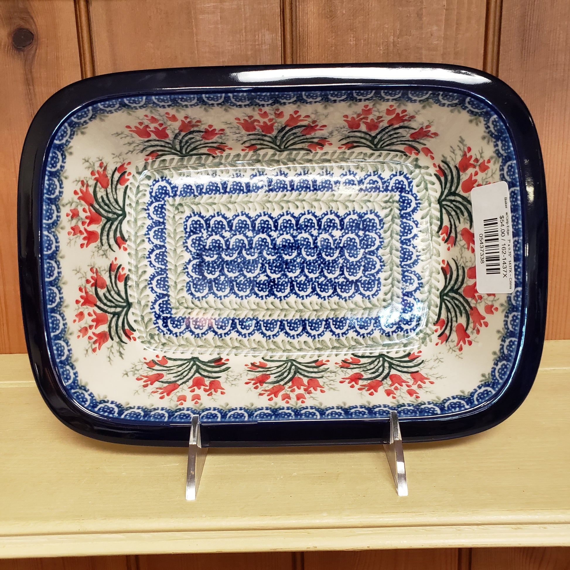 Polish Pottery Baker w/Grip Edge 7" x 9.75" 1437X ~ Crimson Bells PF1024