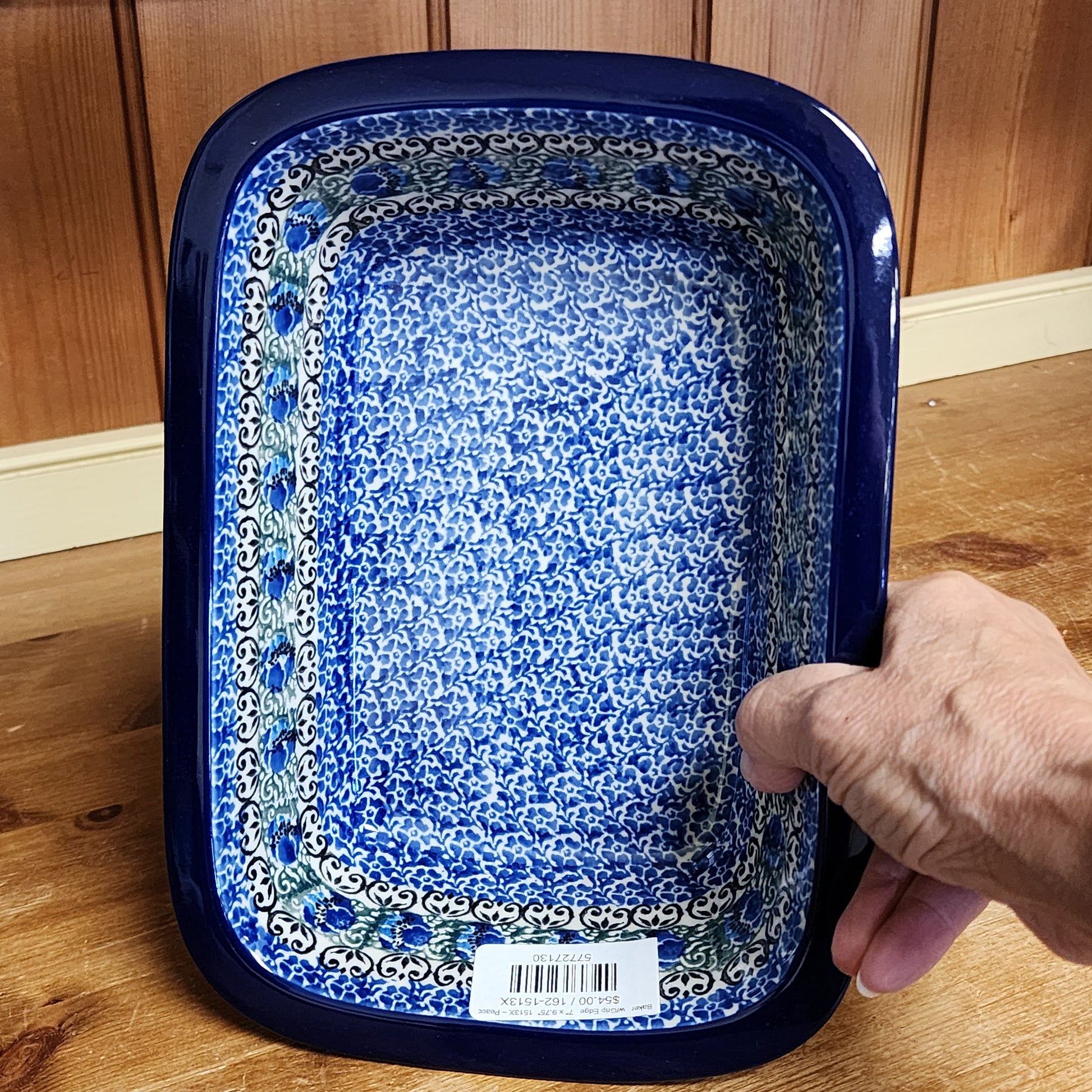 Polish Pottery Baker w/Grip Edge 7" x 9.75" 1513X ~ Peacock Feather PF1024