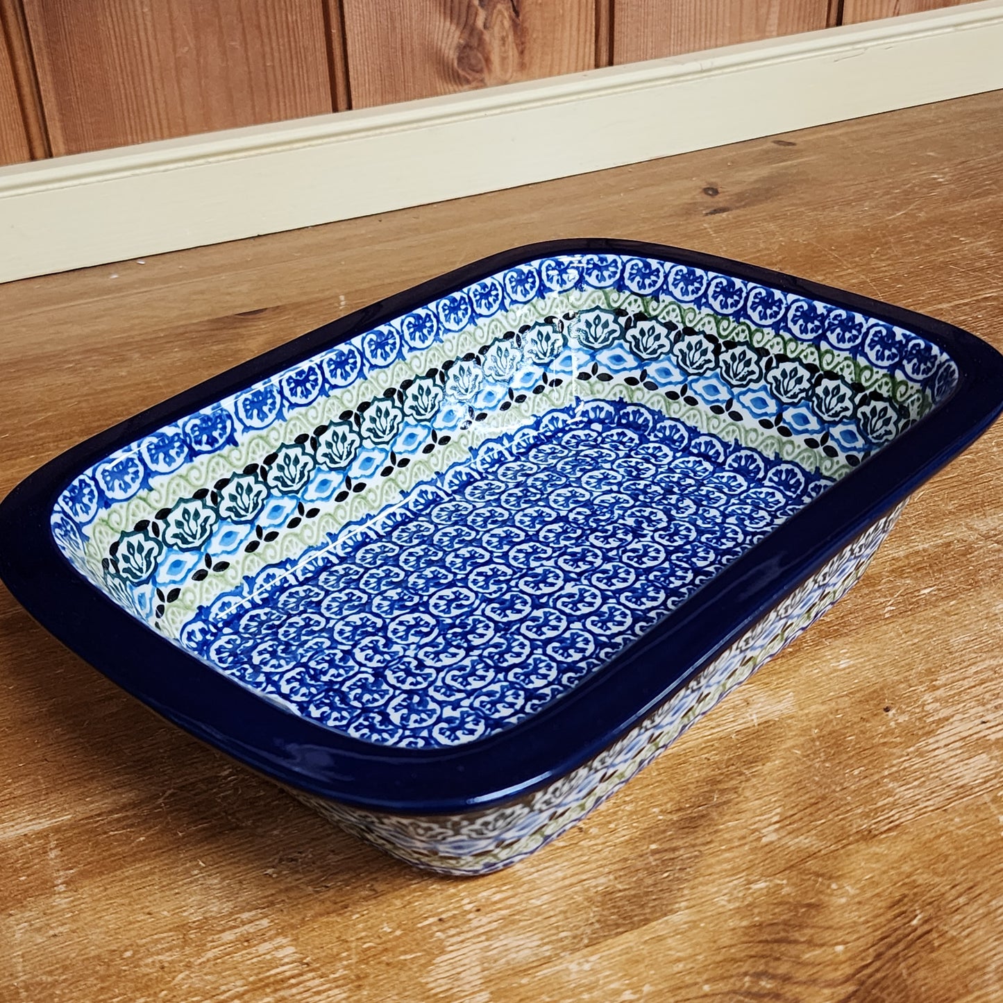 Polish Pottery Baker w/Grip Edge 7" x 9.75" 1858X ~ Tranquility PF1024