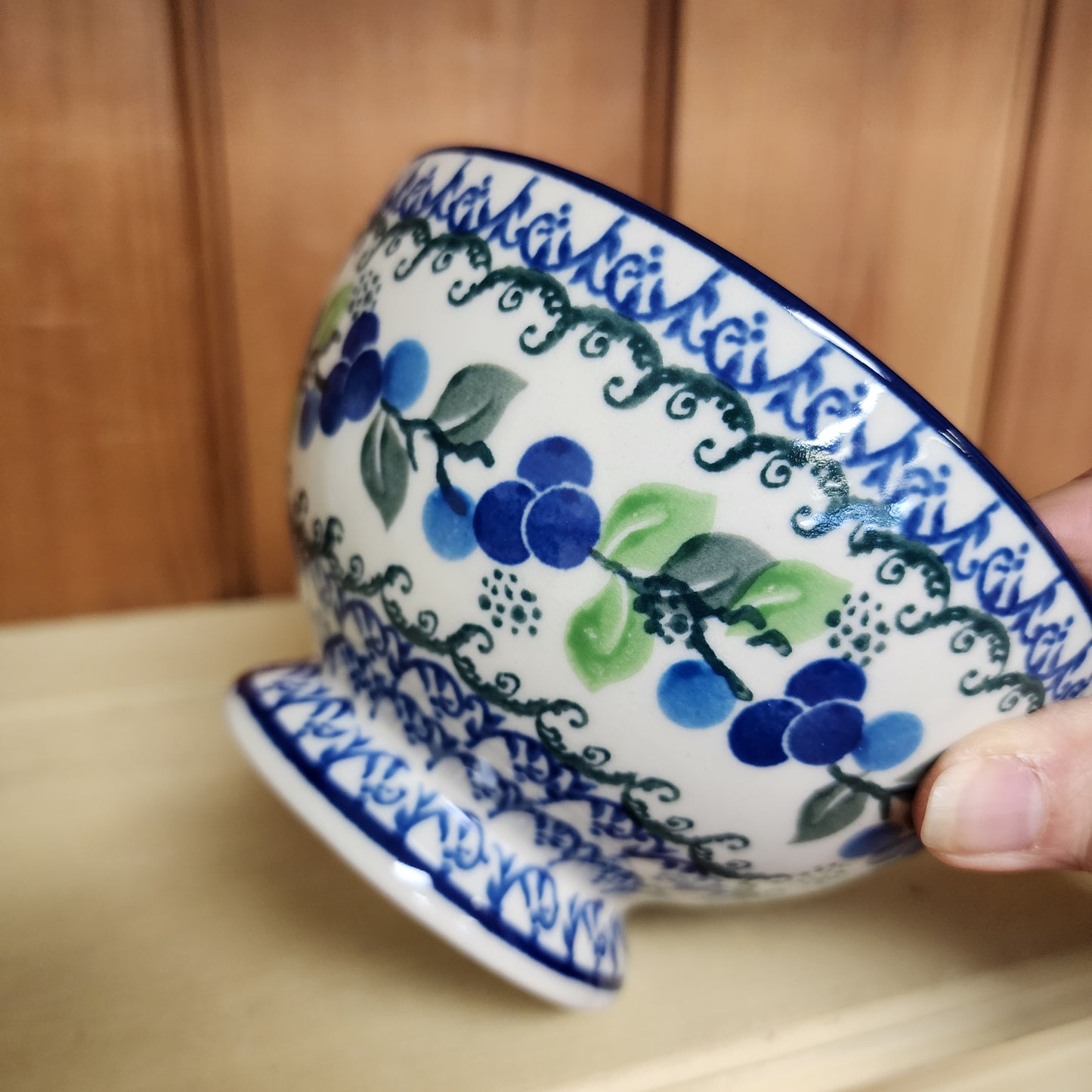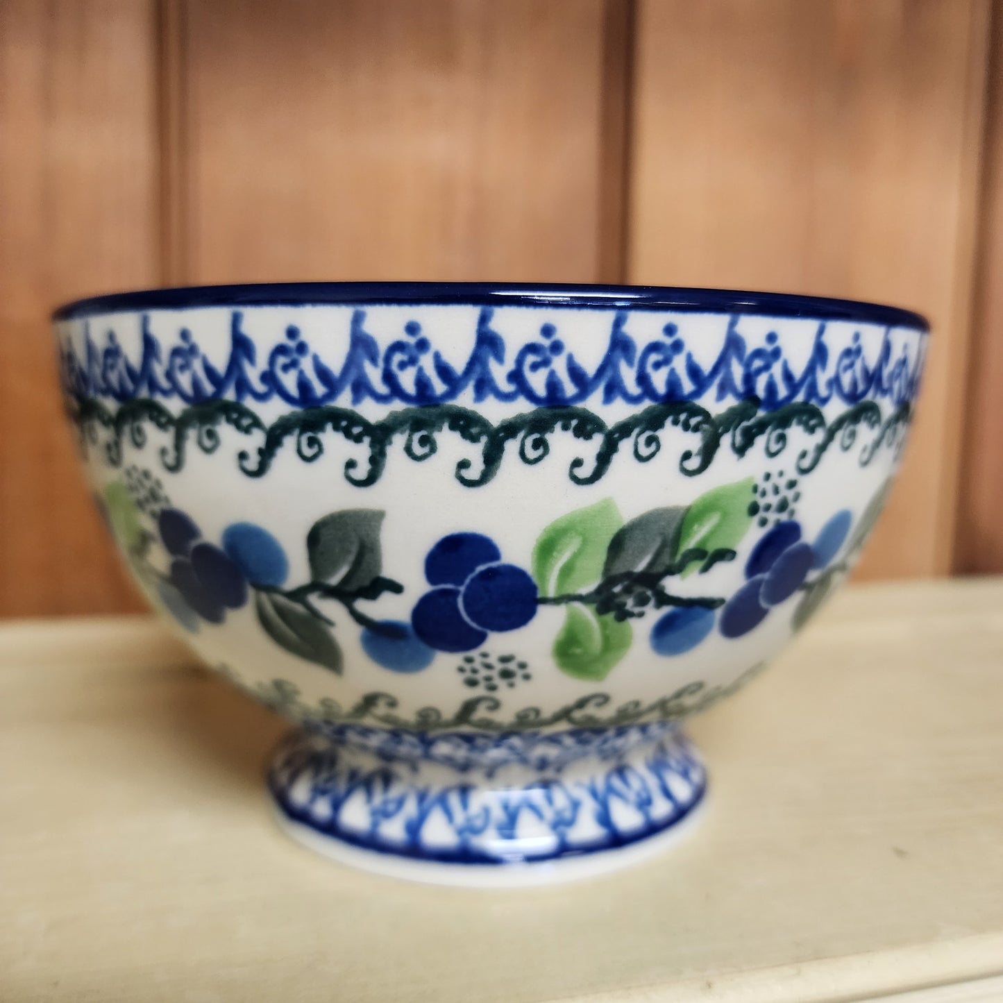 Polish Pottery Bow w/Pedestal 5.25"W 1416X ~ Blue Berries PF1024