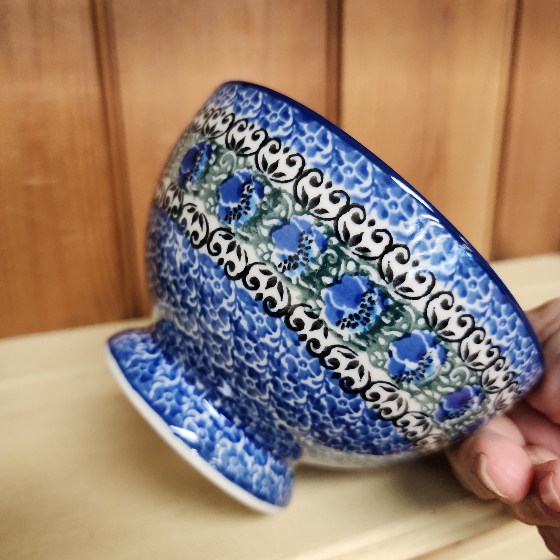 Polish Pottery Bow w/Pedestal 5.25"W 1513X ~ Peacock Feather PF1024