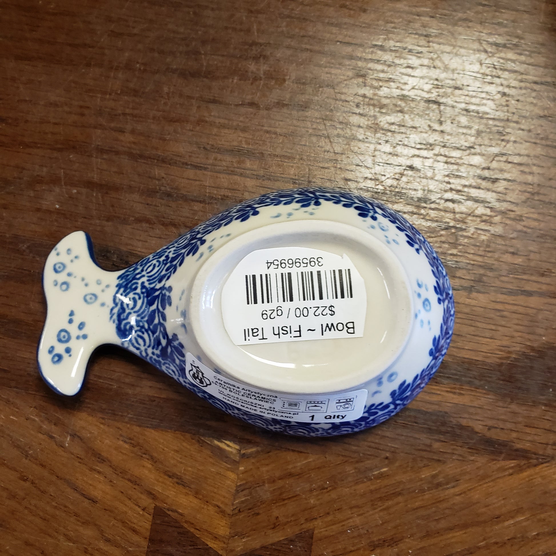 Polish Pottery fish tail shape dish 4.5" smaller 2 oz