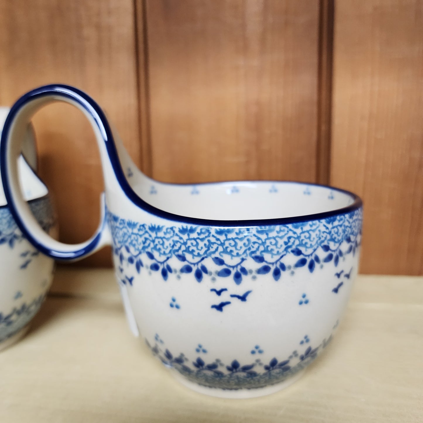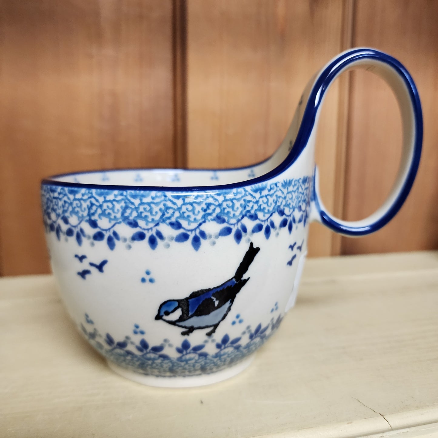 Polish Pottery Bowl w/ Loop Handle 16 oz 2786X ~ Blue Finch PF1024