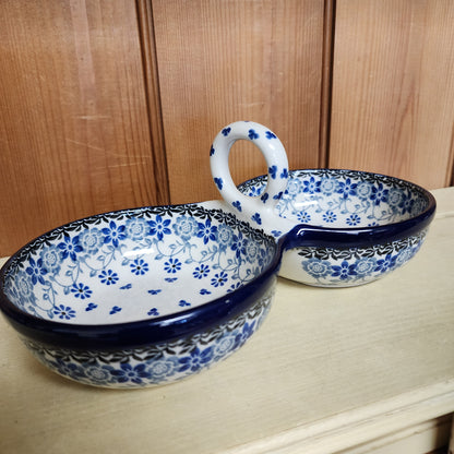 Polish Pottery Bowls Double Serving 9.75"L 2158X ~ Silver Lace PF1024