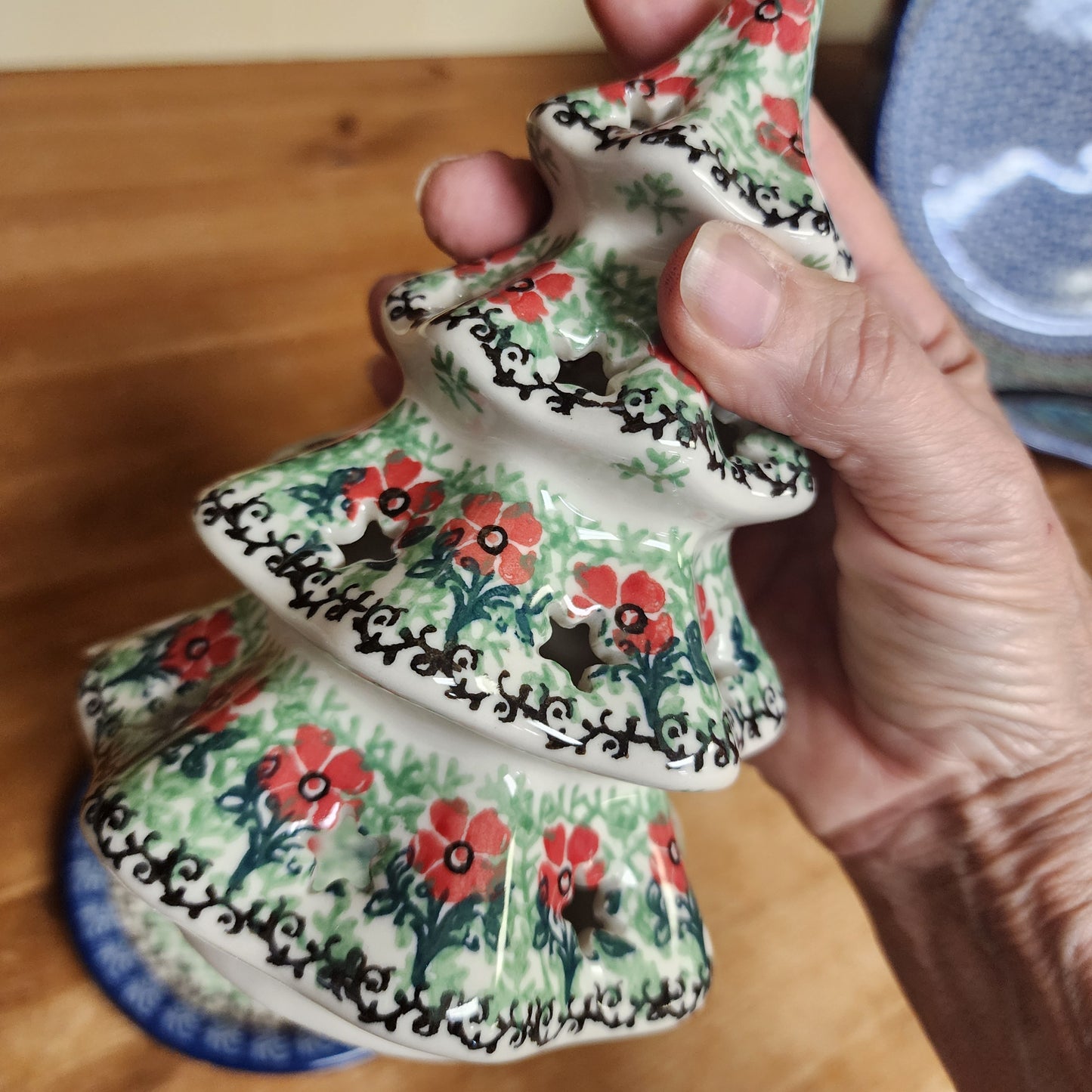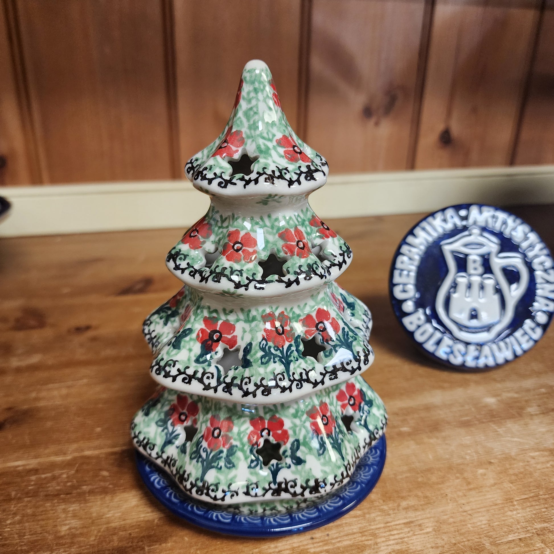 Polish Pottery Christmas Tree Luminary 7" H 1916X ~ Maraschino PF1024