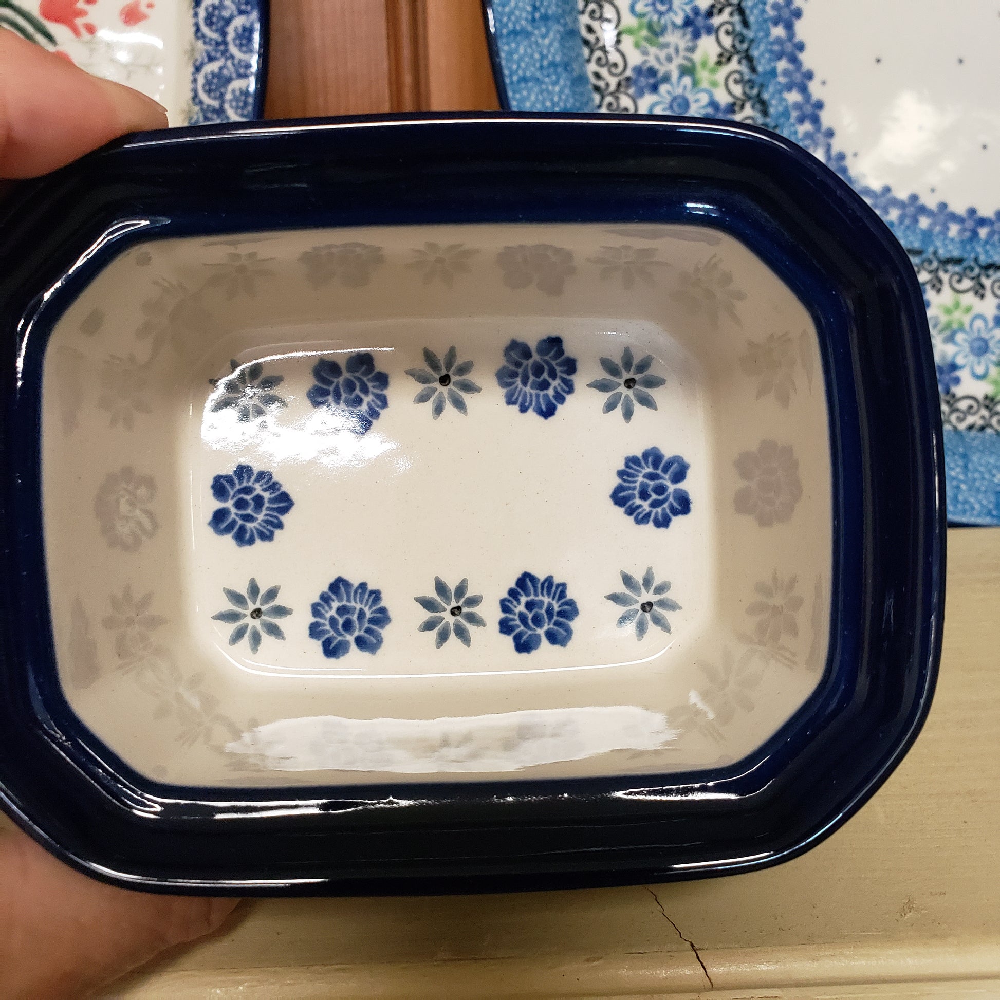 Polish Pottery Covered Container ~ 3.25"H x 3.5"W x 4.5"L 385-2009X pf0425