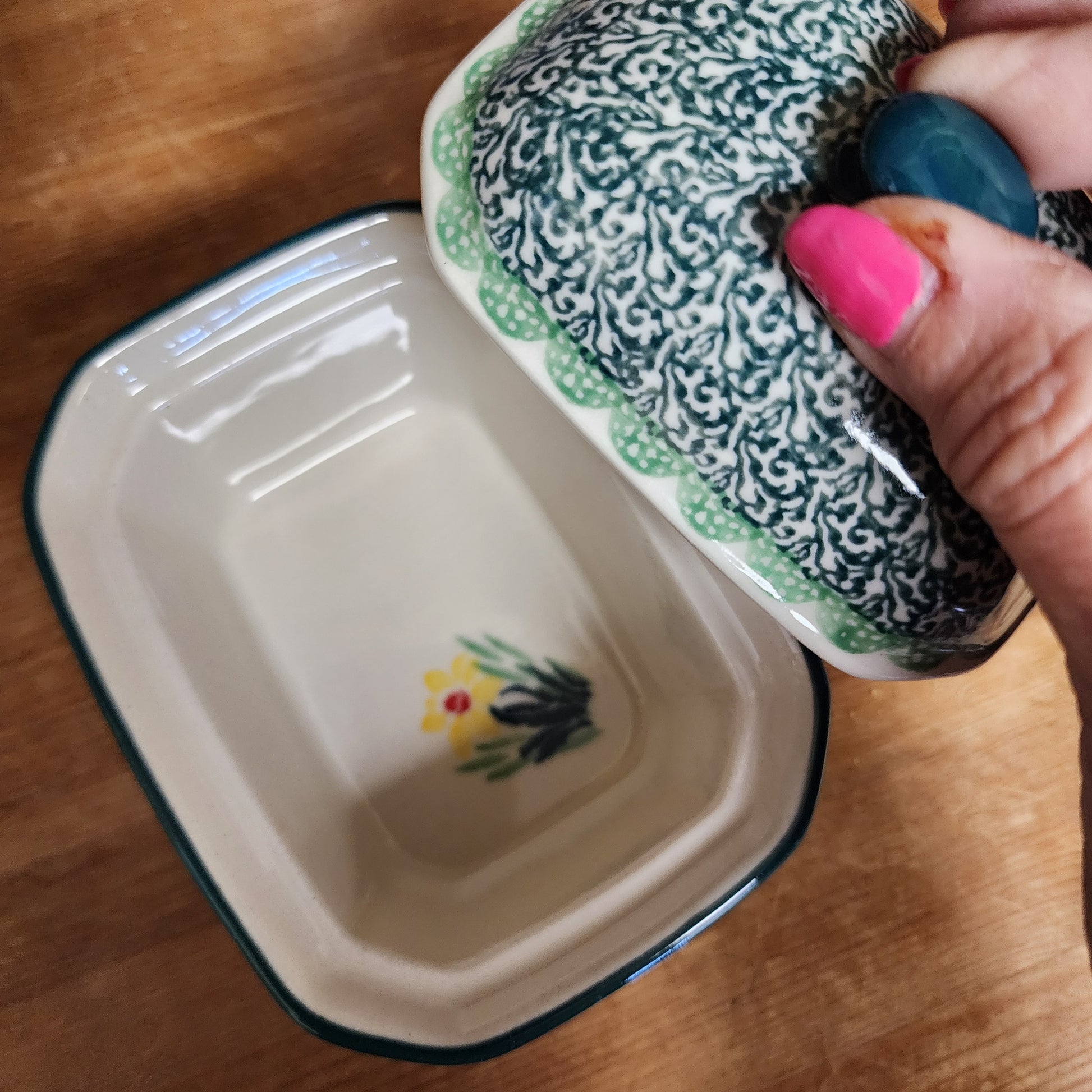 Polish Pottery Covered Container ~ 3.25"H x 3.5"W x 4.5"L 385-2777Q pf0425