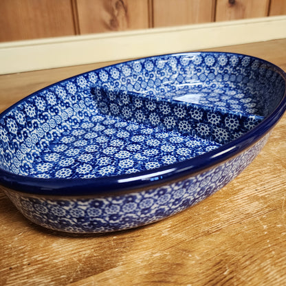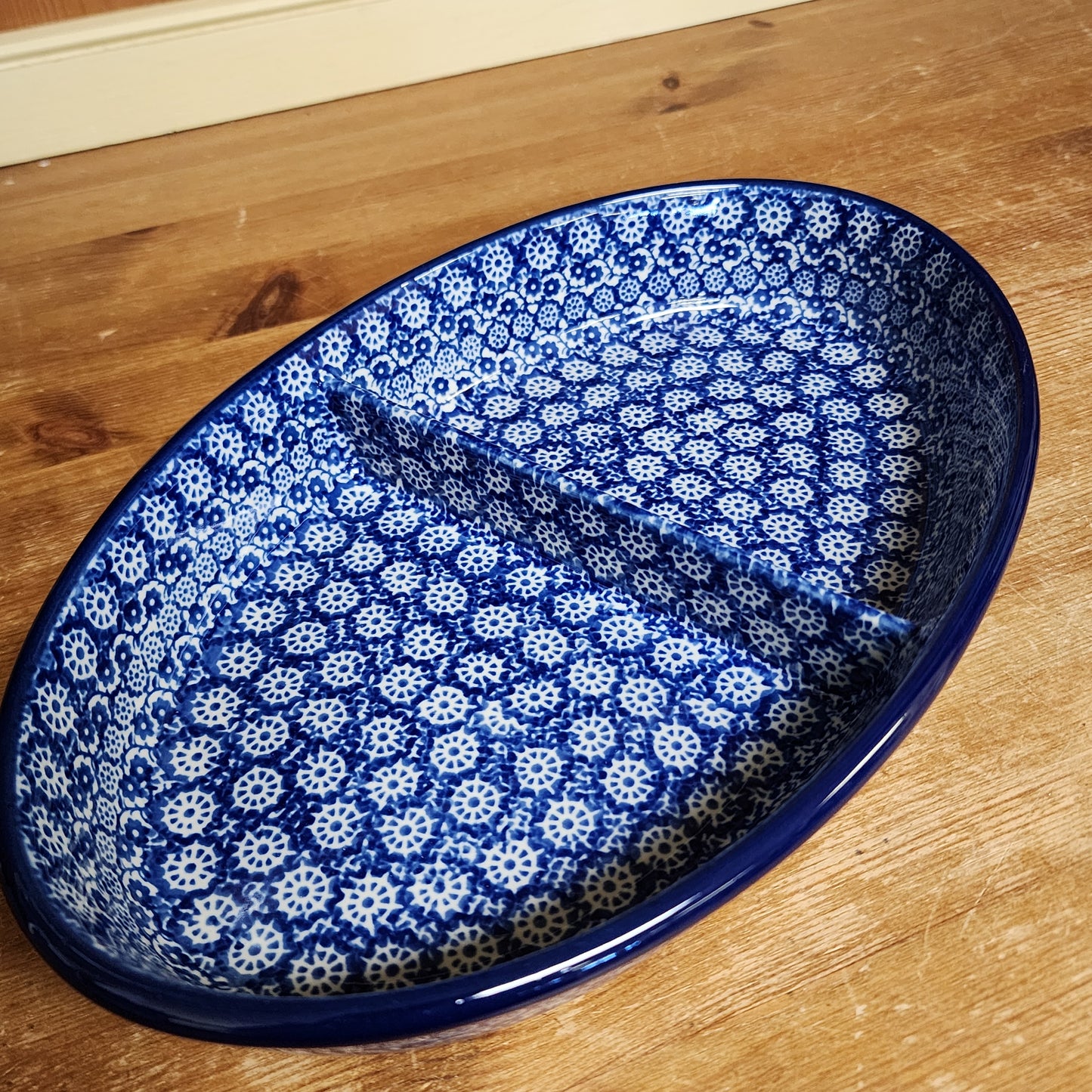 Polish Pottery Dish Divided Oval 2615X ~ Midnight PF1024