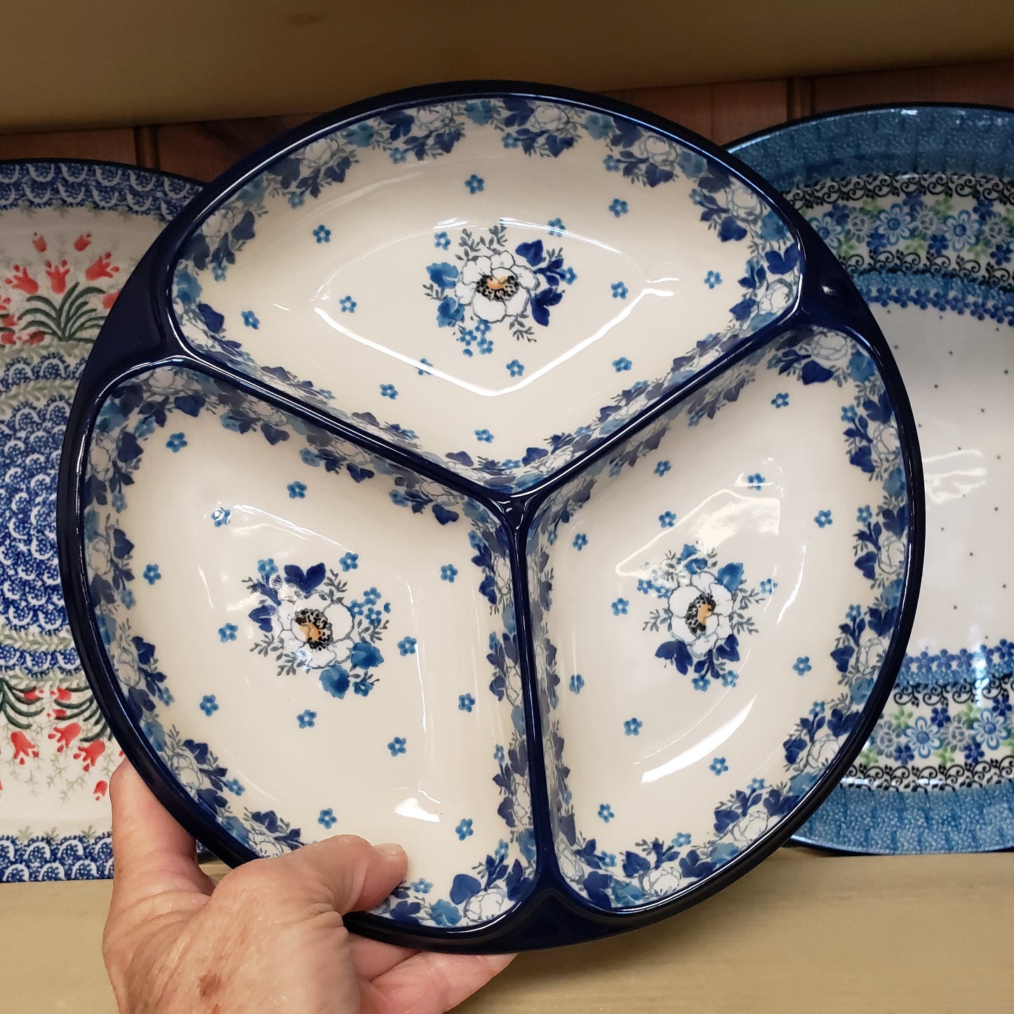 Polish Pottery Dish ~ Divided Round ~ 10" 484-2222X pf0425