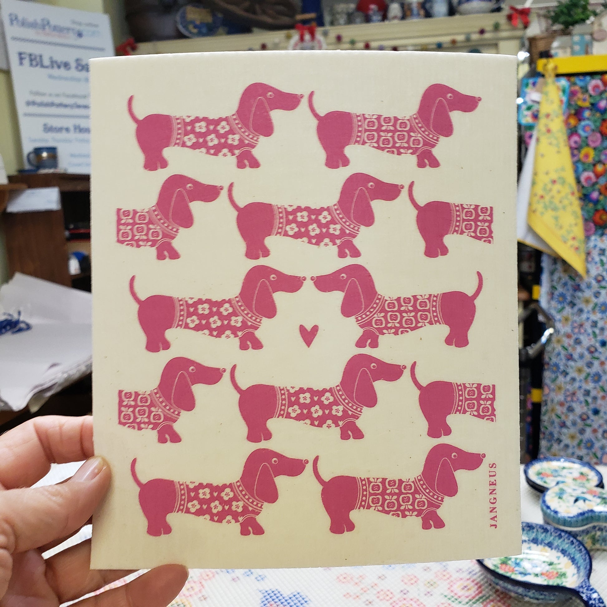 Swedish Dish cloths are designed to absorb like a sponge and wipe like a cloth. They replace ordinary paper towels and sponges. Dachshund