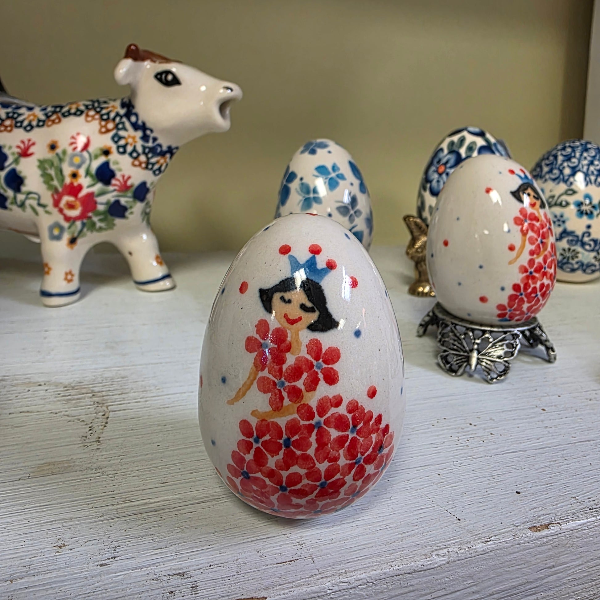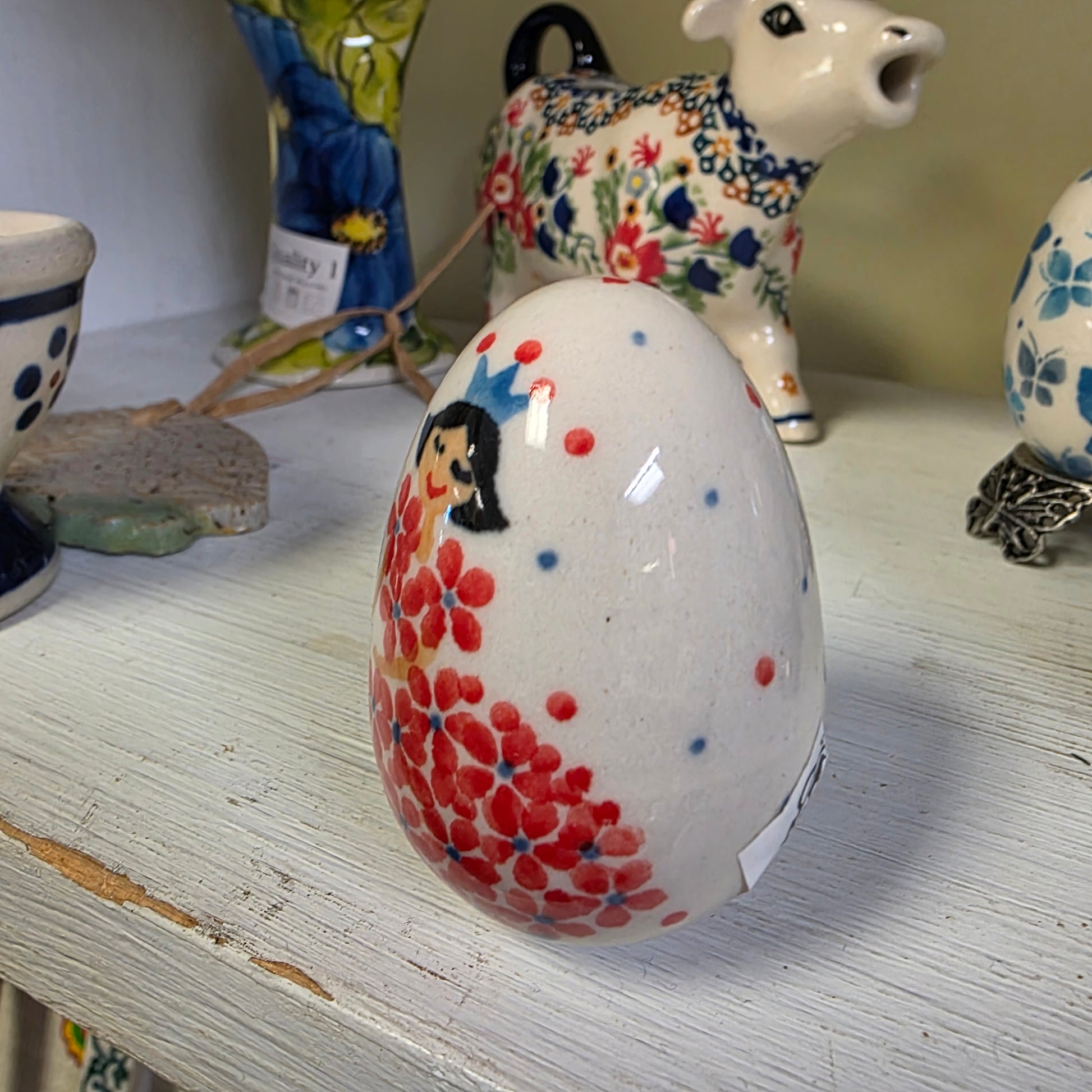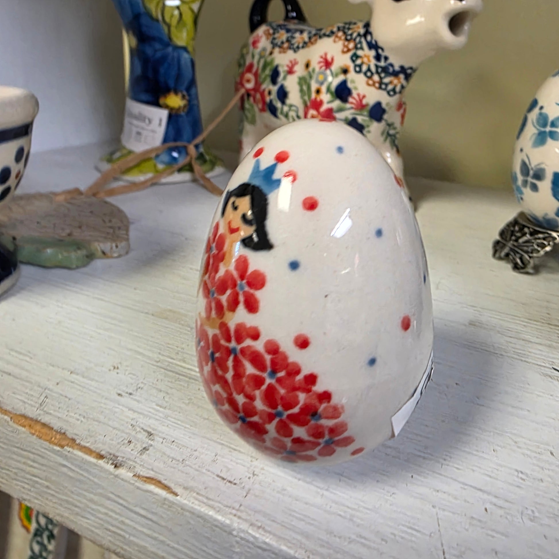 Polish Pottery egg ceramic figurine with butterfly 2 1/4"
