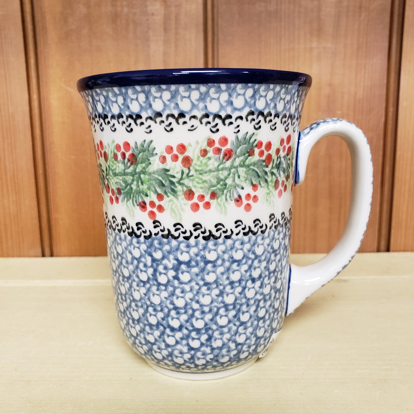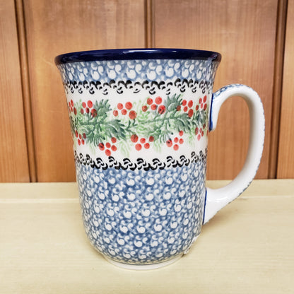 Polish Pottery Mug Bistro 16 oz. 1734X ~ Holly Berry PF1024