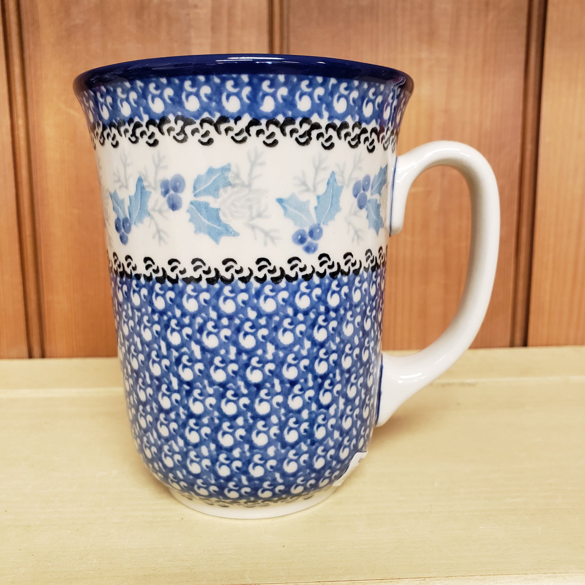 Polish Pottery Mug Bistro 16 oz. 2984X ~ Blue Holly Ring PF1024