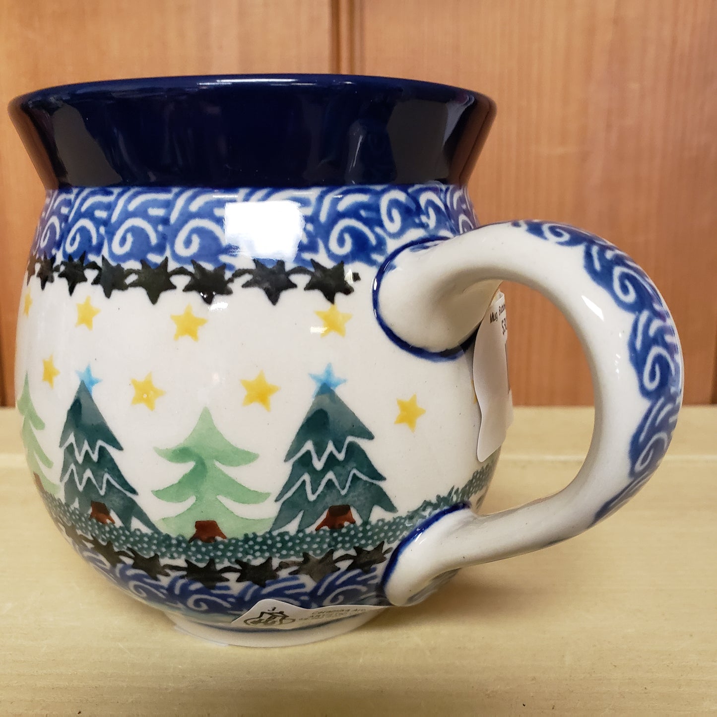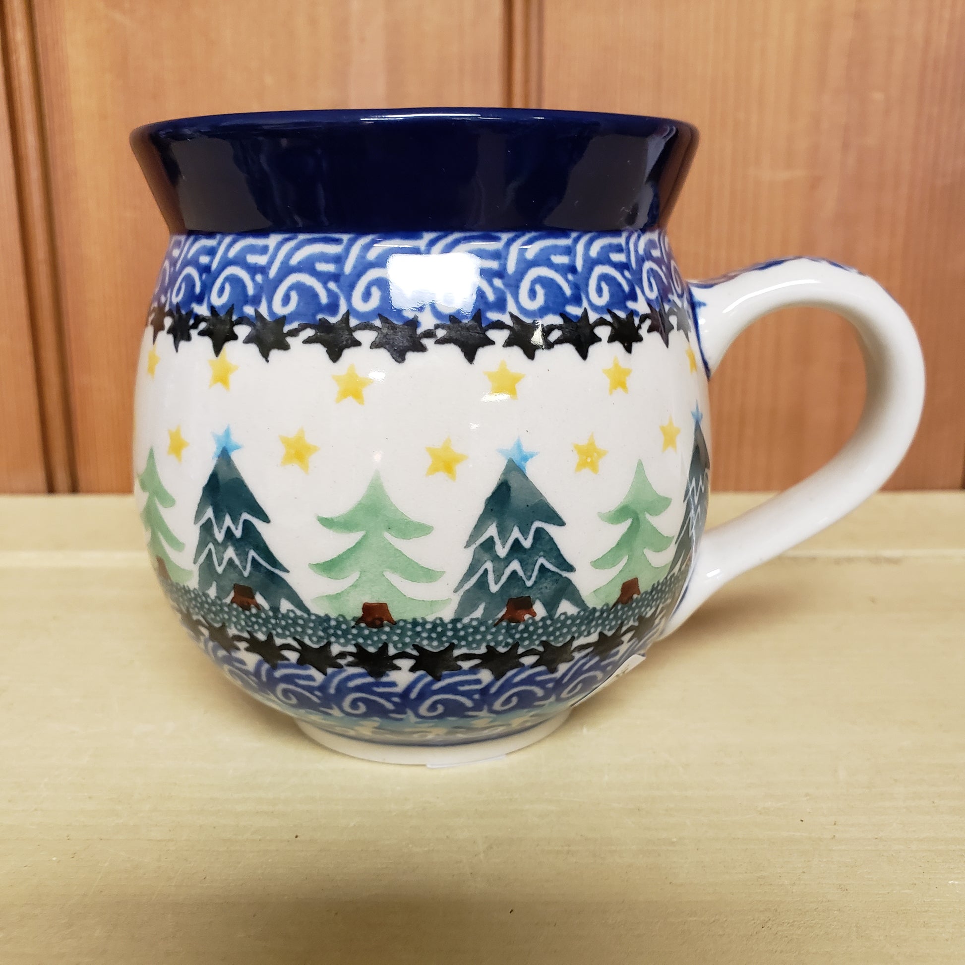 Polish Pottery Mug Bubble 11 oz. 1284X ~ Christmas Trees PF1024