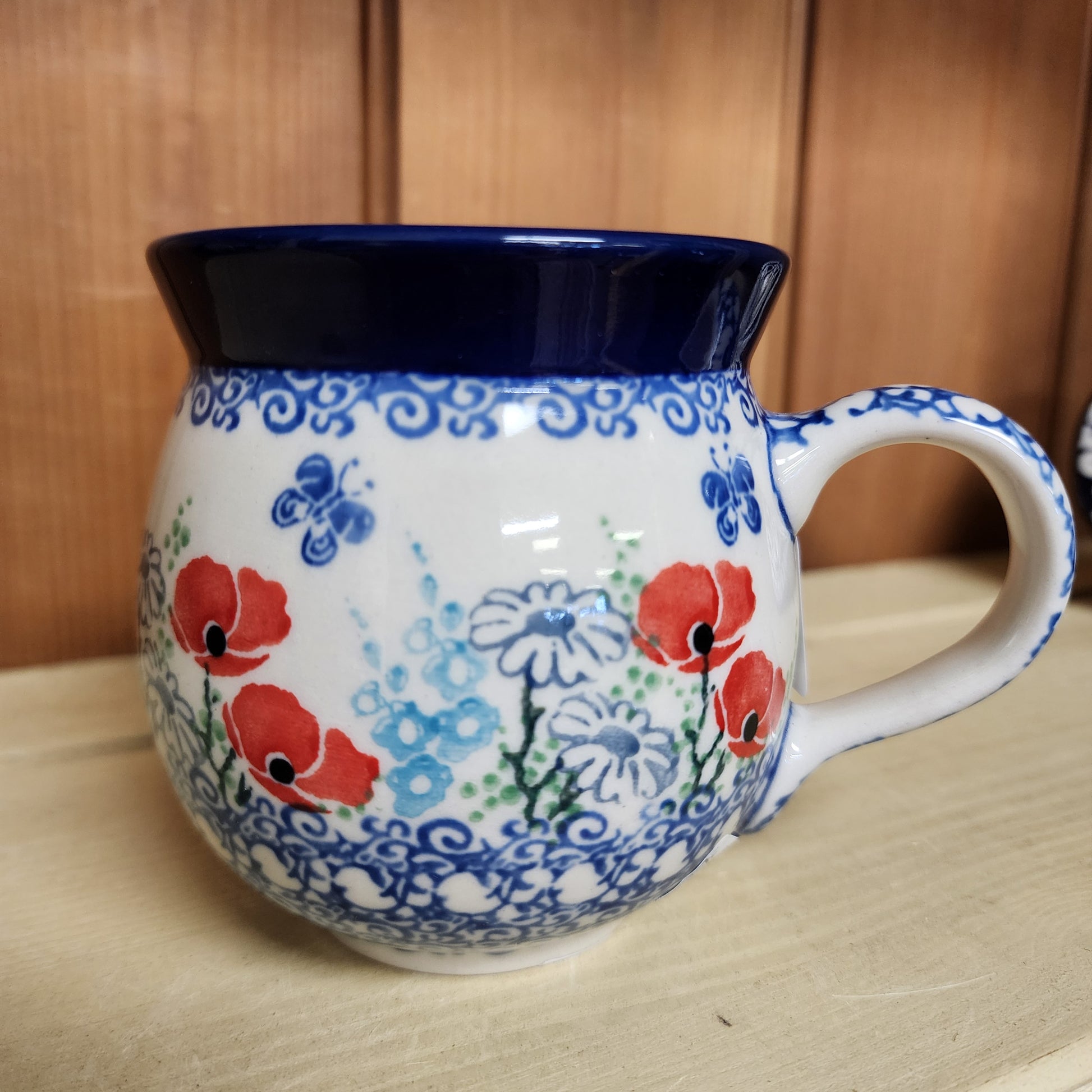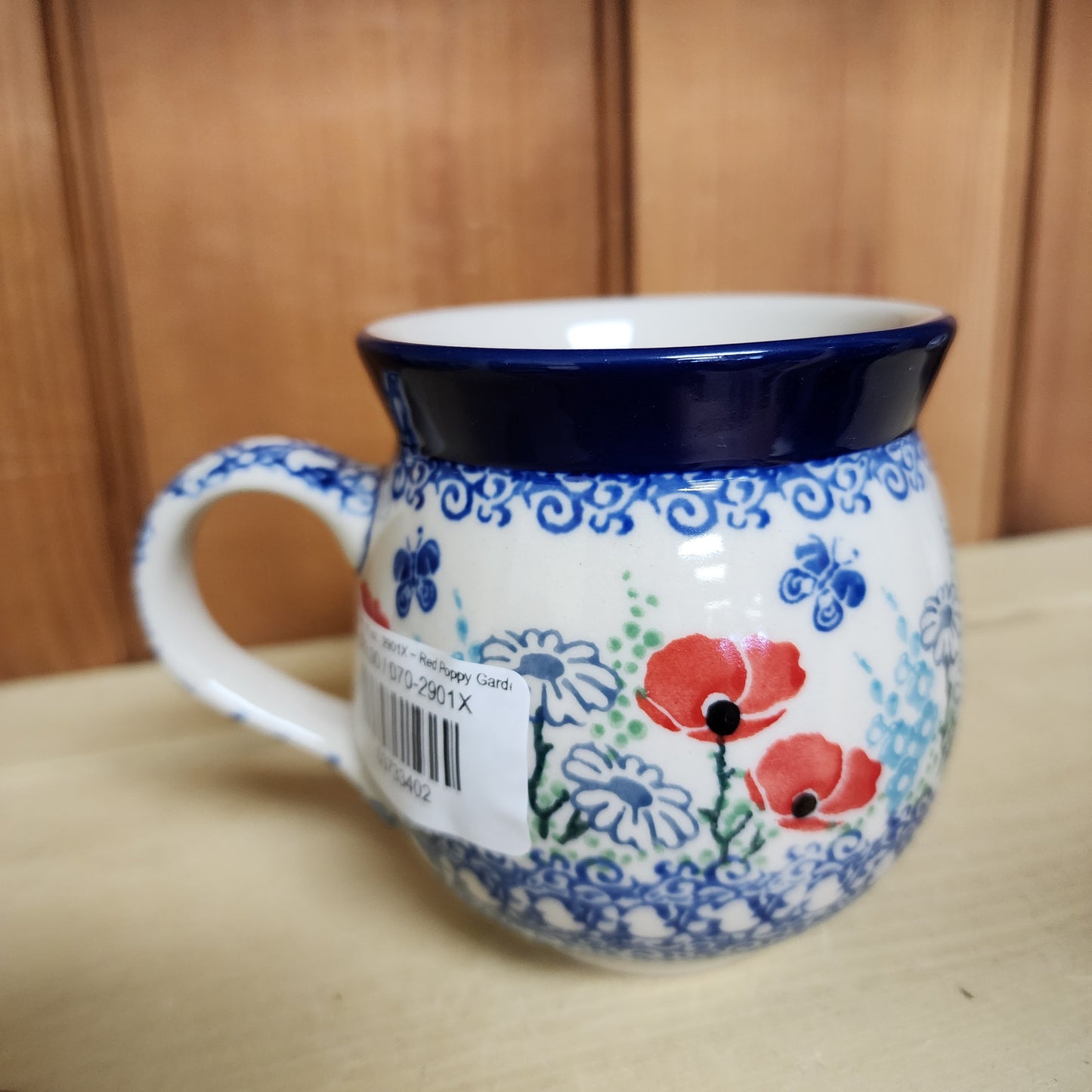 Polish Pottery Mug Bubble 11 oz. 2901X ~ Red Poppy Garden PF1024