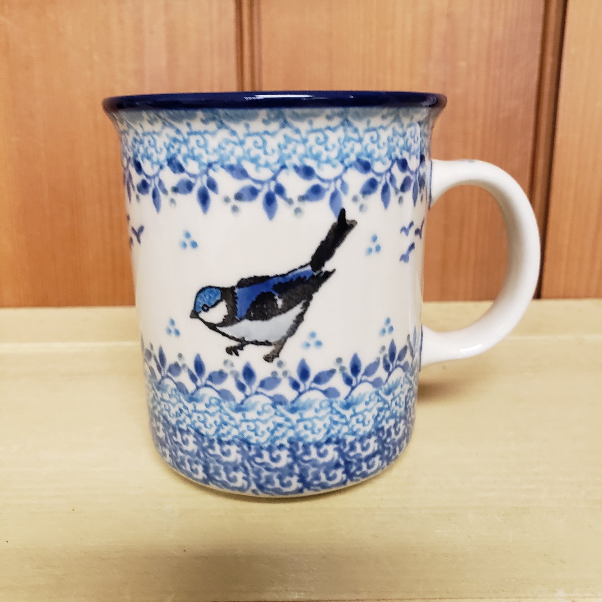Polish Pottery Mug Straight Side 8 oz 2786X ~ Blue Finch PF1024