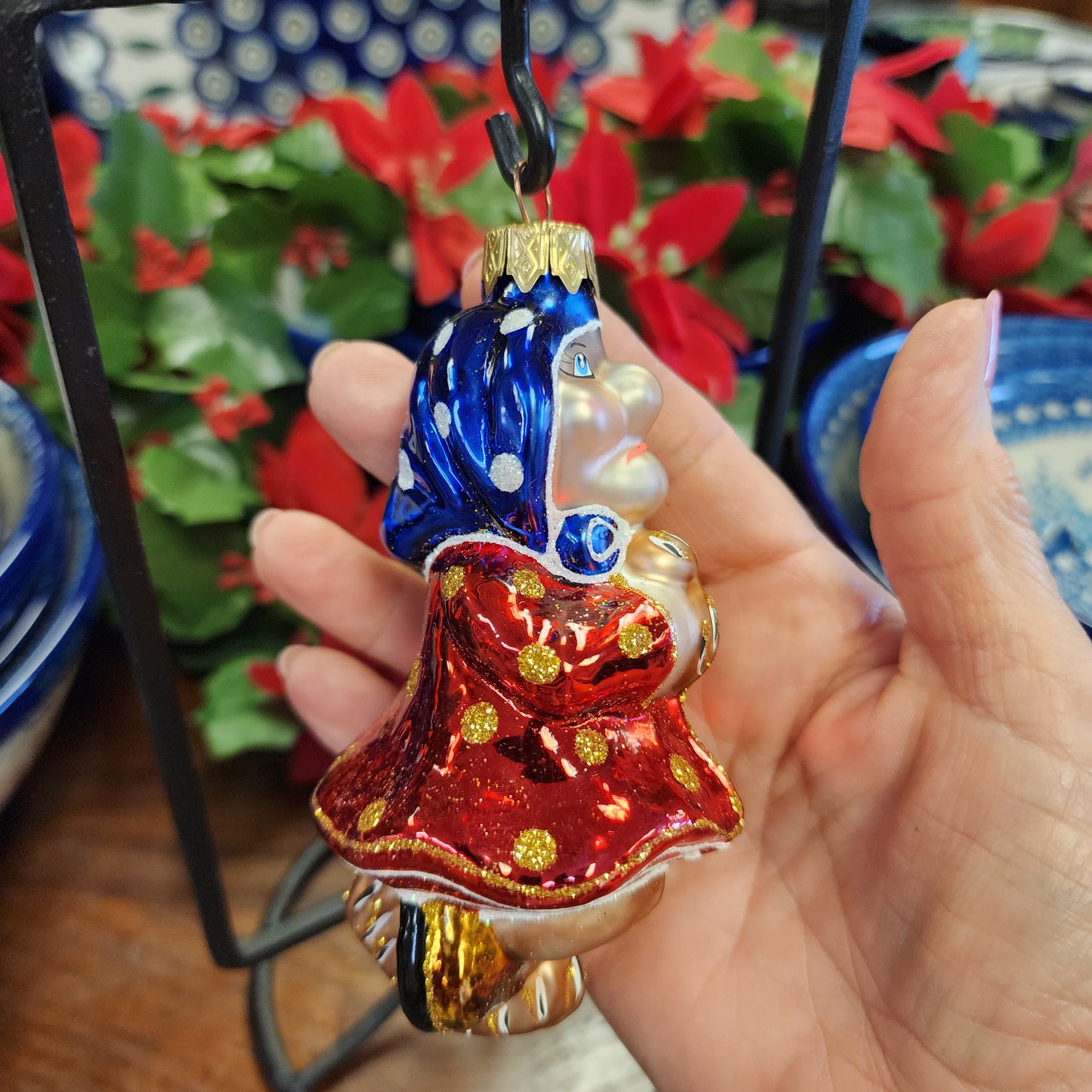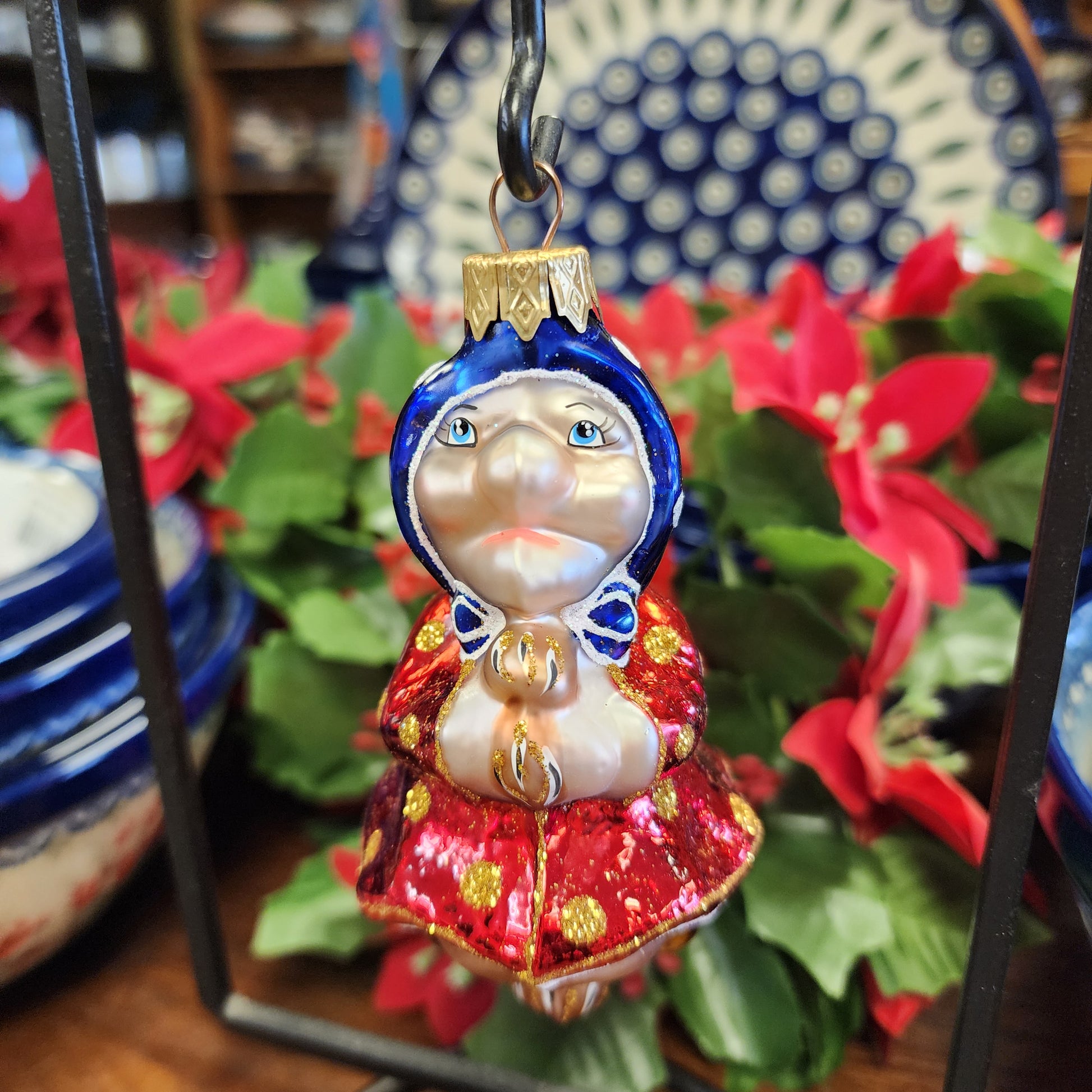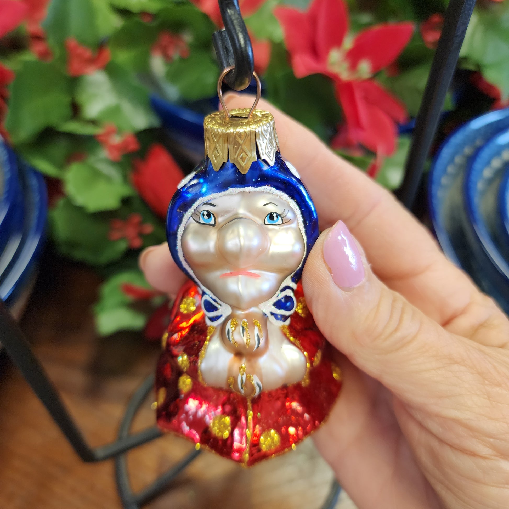 Ornament ~ red/Blue Baba Yaga ~ Made In Ukraine