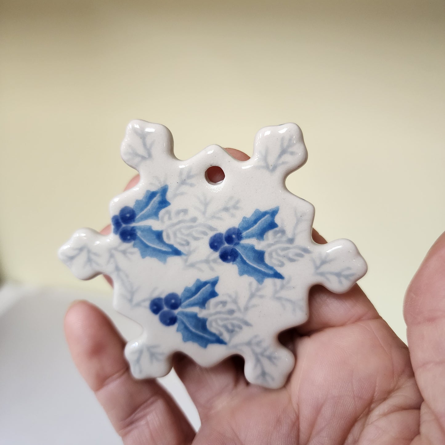 Polish Pottery Ornament Snowflake 3" x 3" 2984X ~ Blue Holly Ring PF1024