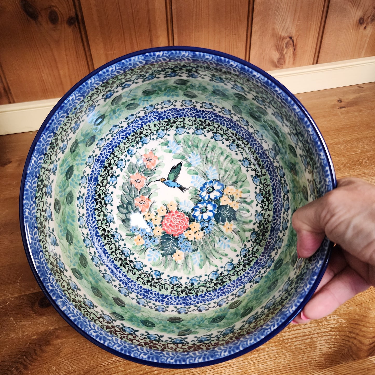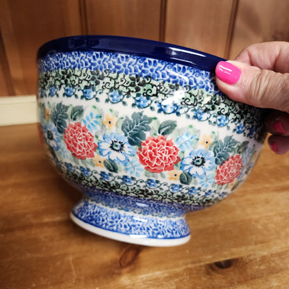 Polish Pottery Pedestal Bowl - Large A14-U3271 pf0425 (8.5"w x 5"h)