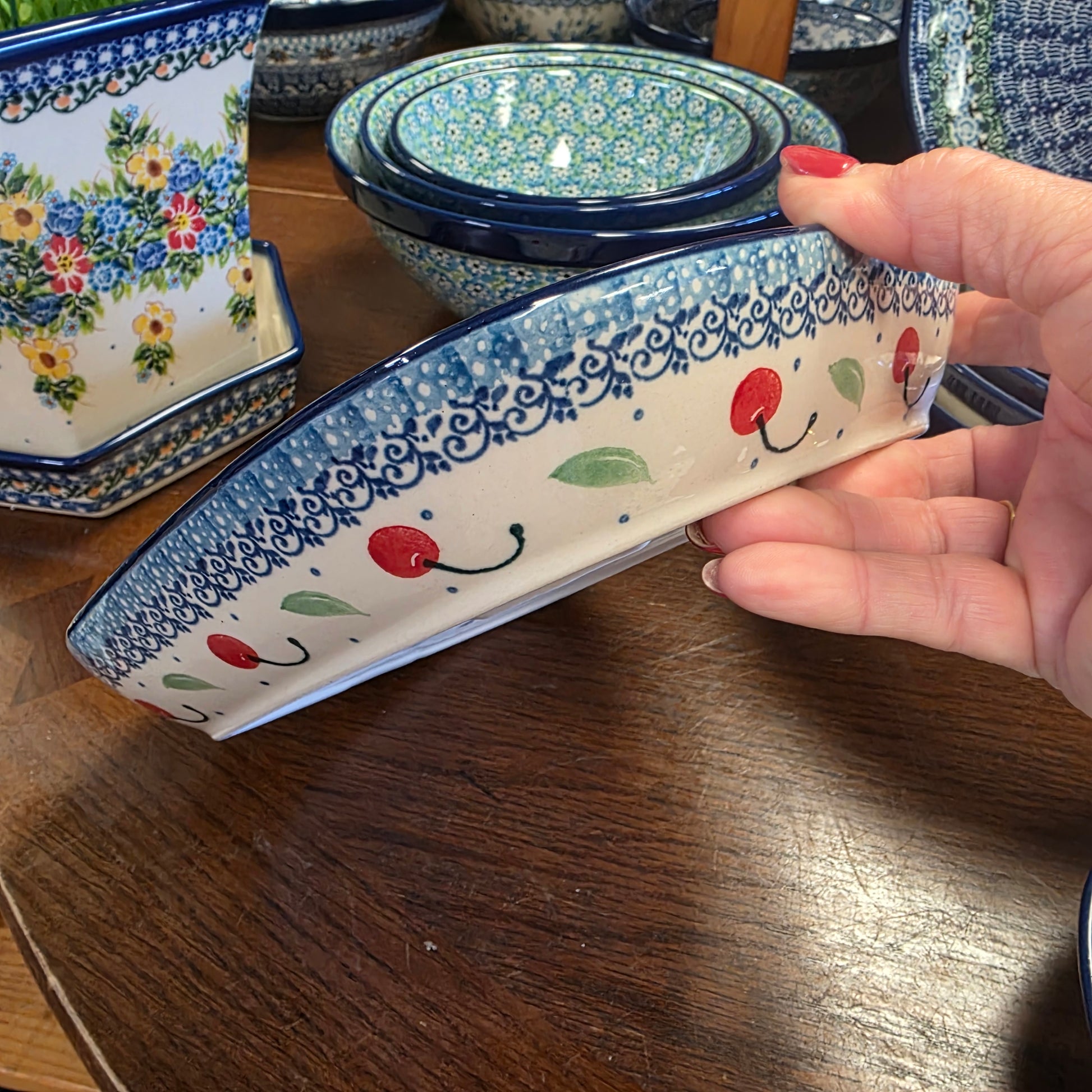 Polish PotteryBaker ~ 7.5" x 8.75" 2715X ~ Cherry Pie pattern. Handmade in Boleslawiec, Poland. We ship from Melbourne, Florida