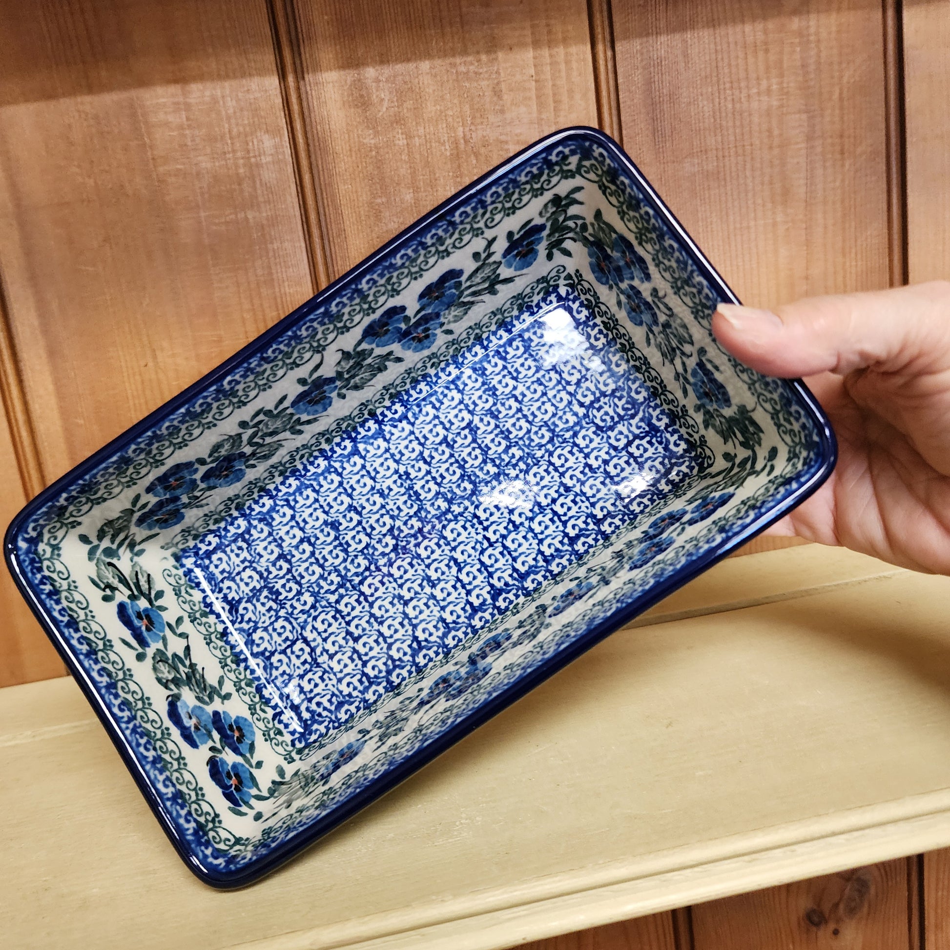 Polish PotteryBaker ~ Loaf Pan ~ 7.75"w X 8"L 2273X ~ Winter Viola pattern. Handmade in Boleslawiec, Poland. We ship from Melbourne, Florida