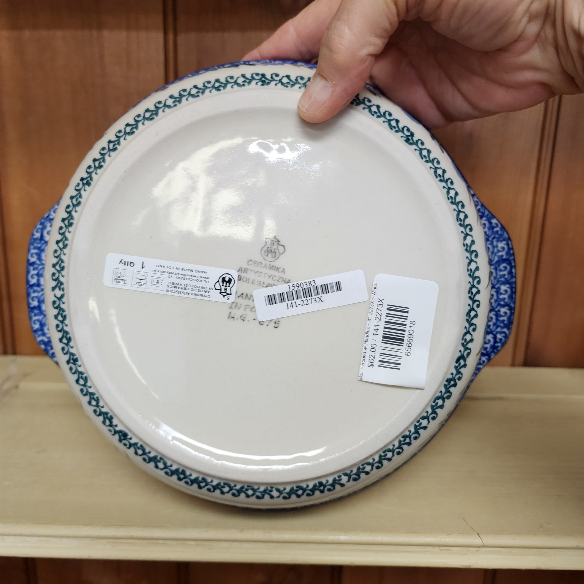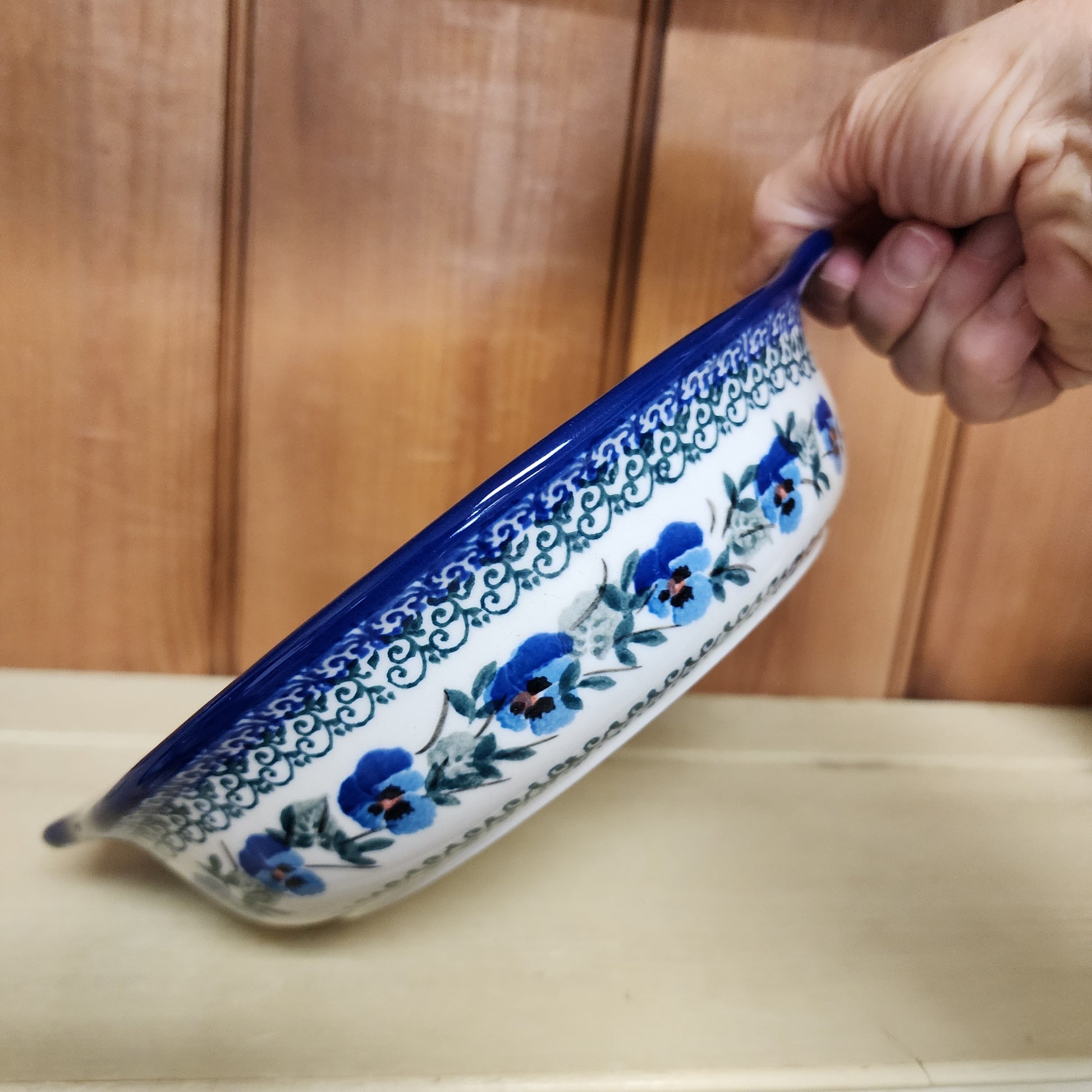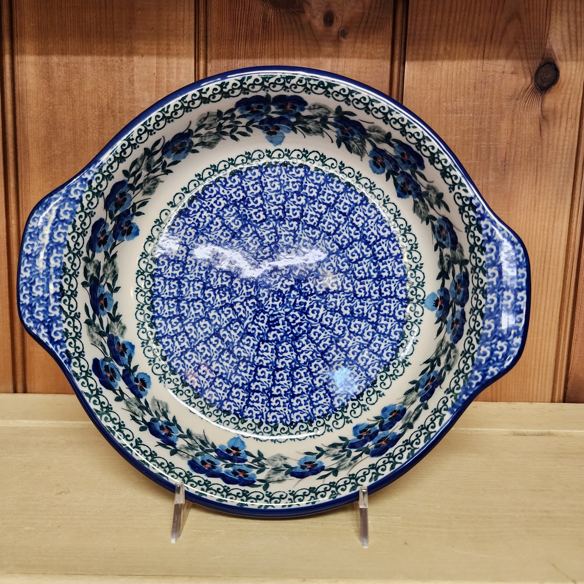 Polish PotteryBaker ~ Round w/ Handles ~ 8" 2273X ~ Winter Viola pattern. Handmade in Boleslawiec, Poland. We ship from Melbourne, Florida