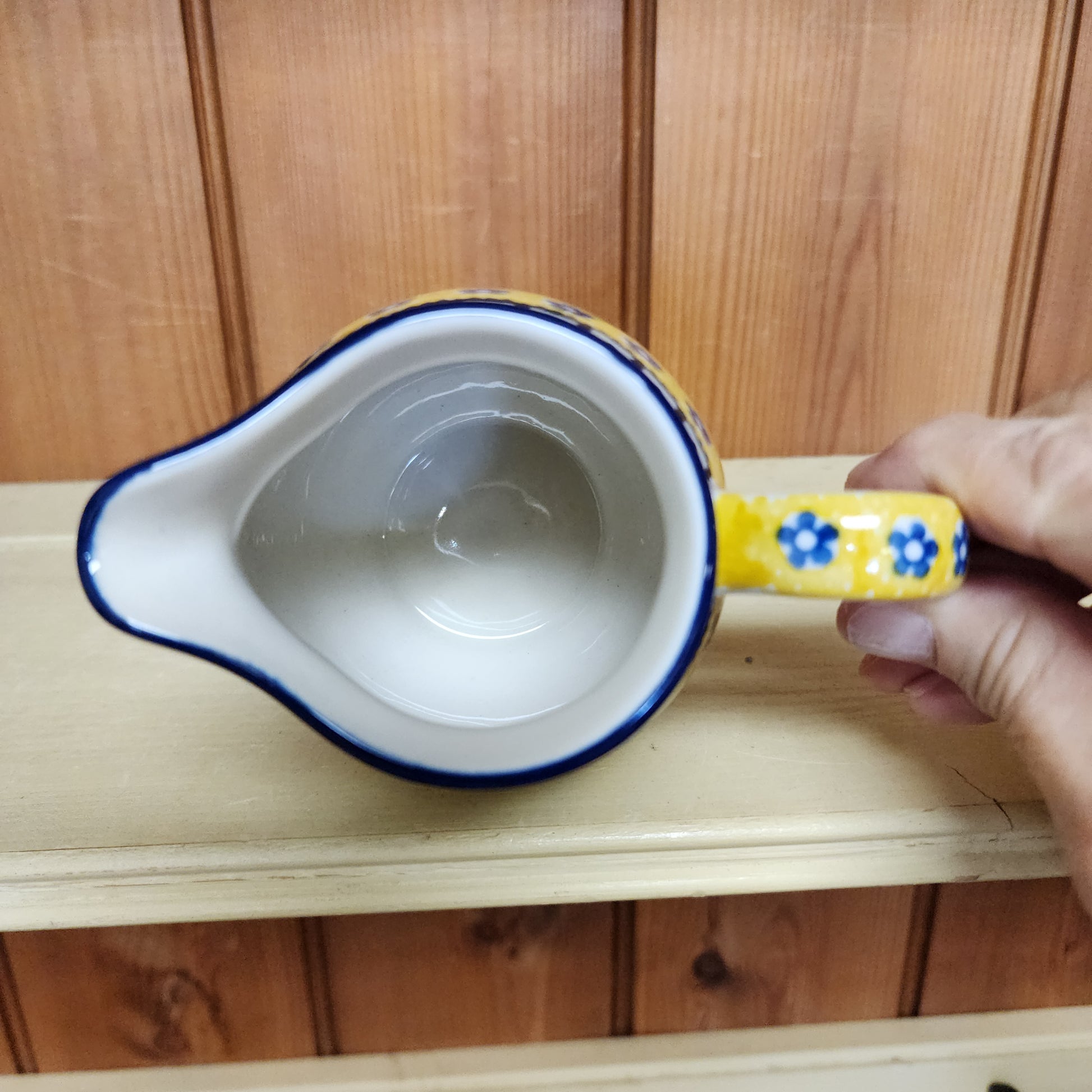 Polish PotteryCream Pitcher ~ 11 oz 0859X ~ Sunburst pattern. Handmade in Boleslawiec, Poland. We ship from Melbourne, Florida